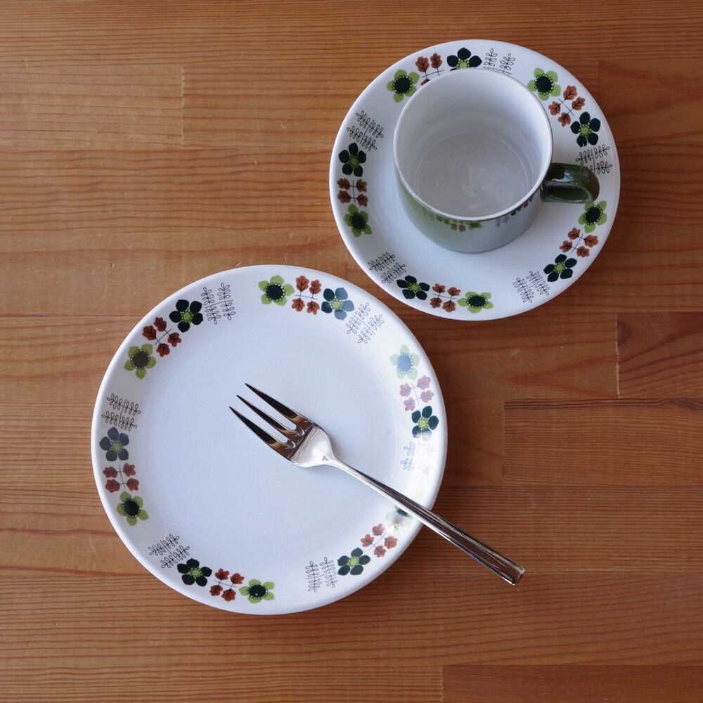 リム部分に、グリーンを基調としたレトロな花の絵柄が入った