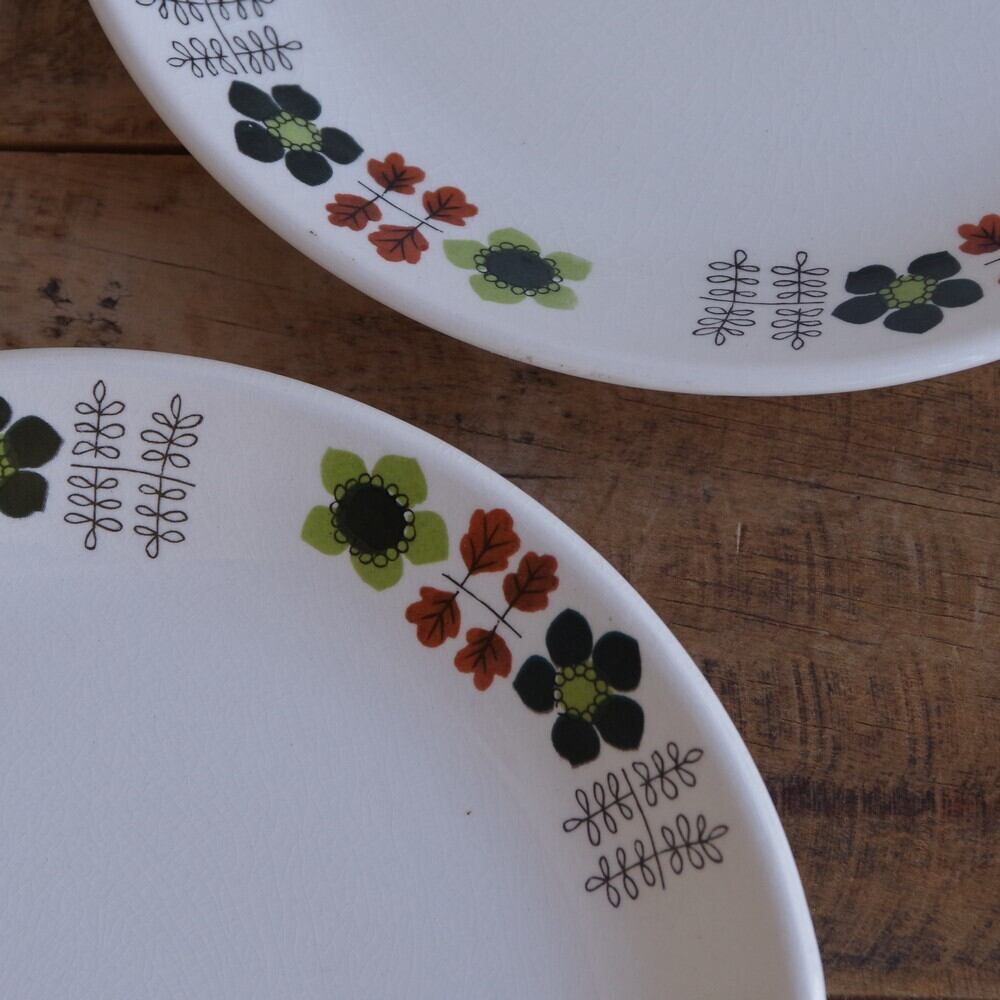 ビルトンズ グリーン レトロ 花柄 デザートプレート 17cm Biltons #220604-1~4 イギリス アンティーク ビンテージ 食器 陶器