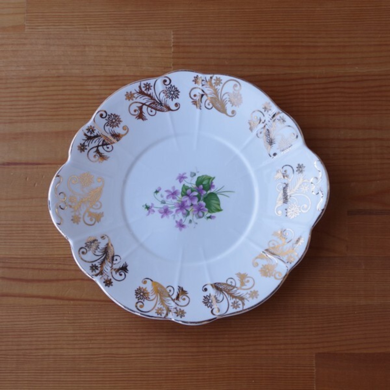 イギリス ウィンザー Windsor すみれ 花柄 持ち手付き プレート ゴールド #220609-2 ヴィンテージ 食器 陶器 レトロ Bone China England