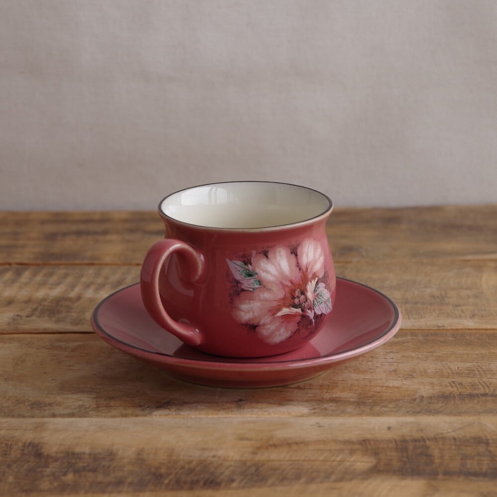 デンビー ダマスク コーヒーカップ ソーサー ピンク 花柄 DENBY Damask 小さめ #220703-1,2 イギリス ビンテージ 食器 アンティーク レトロ 陶器 デミタス