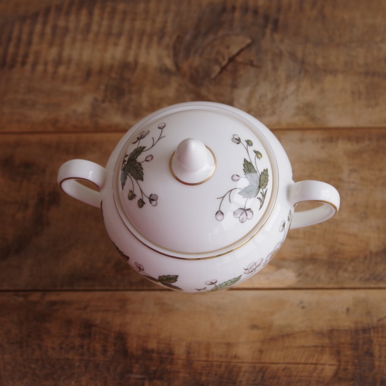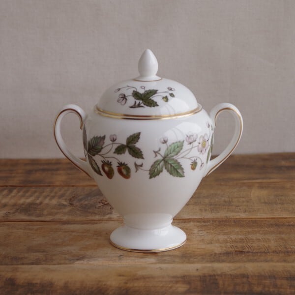 ウェッジウッド ストロベリーヒル いちご柄 シュガーポット ヴィンテージ 食器 #220709 イギリス 陶器 アンティーク Wedgwood Strawberry Hill