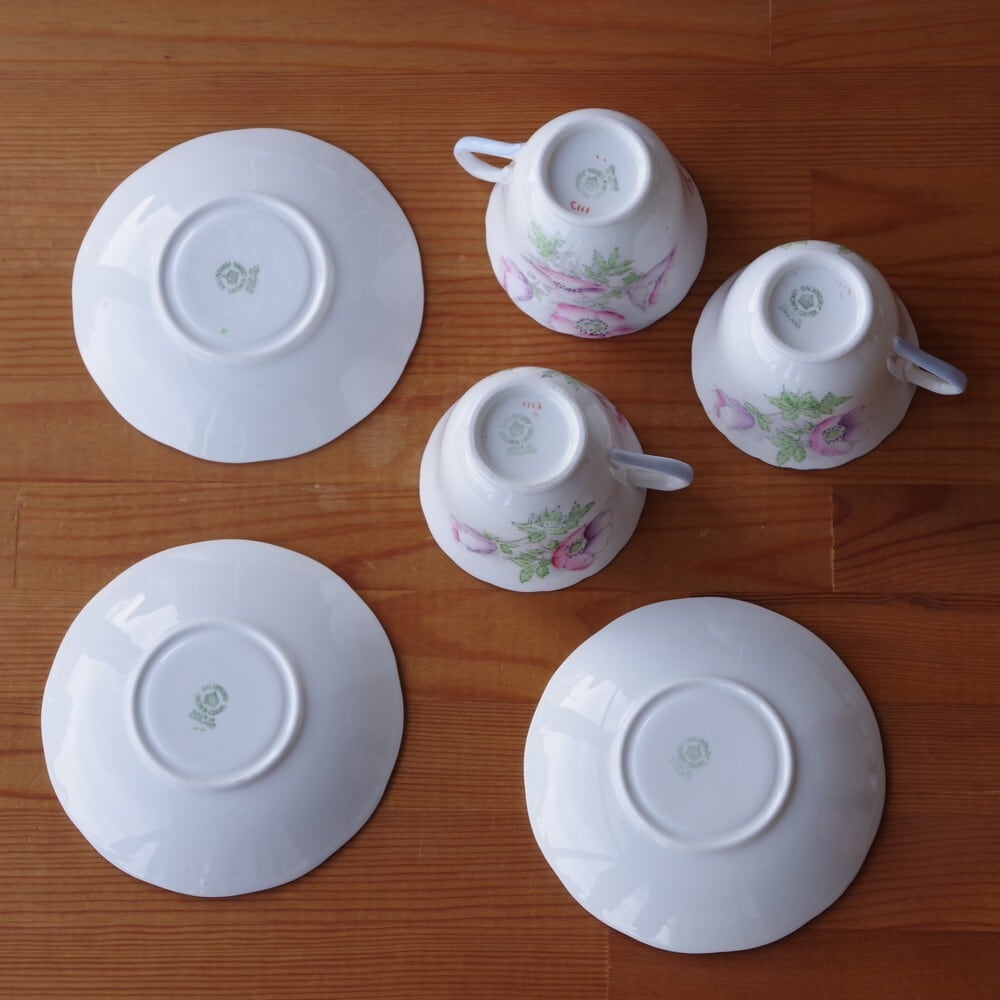 ソールズベリー Salisbury Crown China ひなげし ポピー 花柄 コーヒーカップ ソーサー 陶器 #220715-1~3 イギリス ヴィンテージ レトロ アンティーク 食器