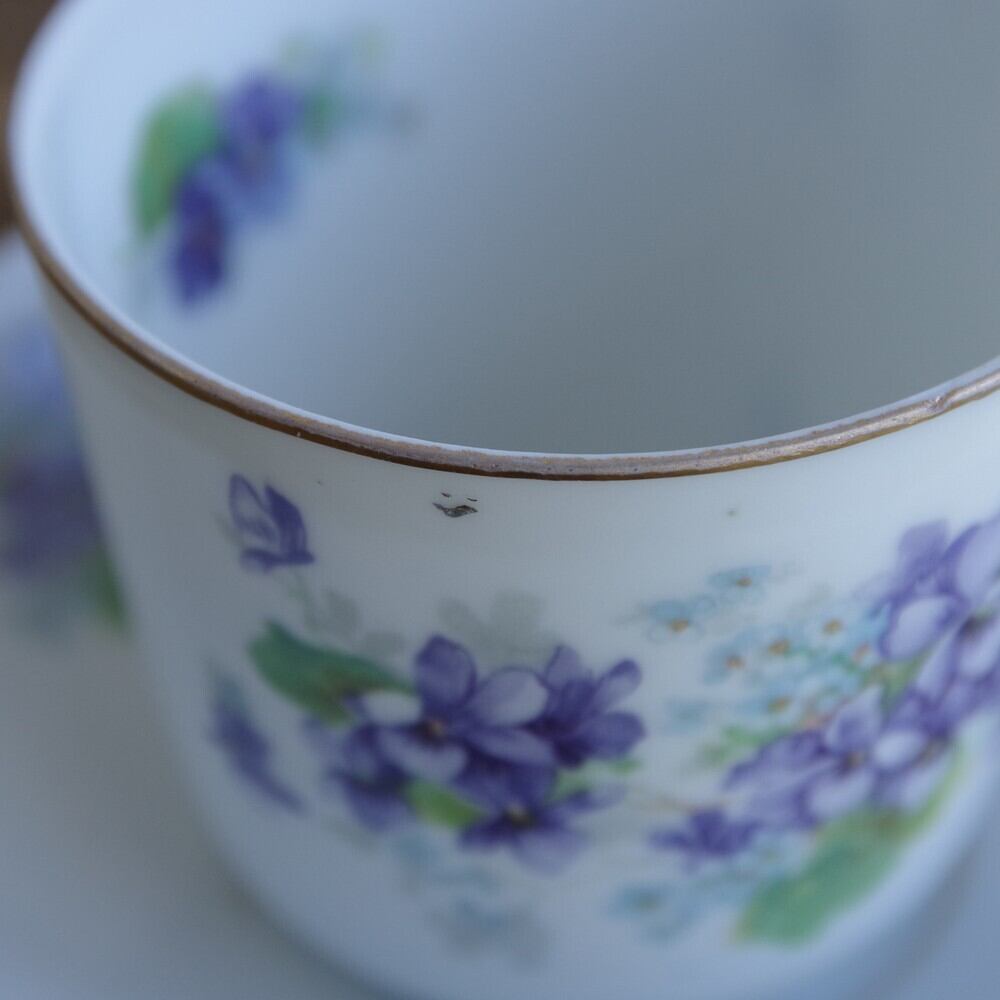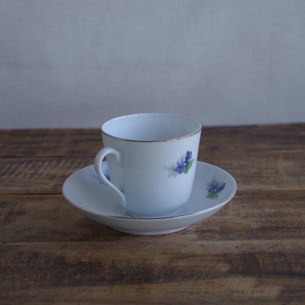 チェコスロバキア製 ビクトリア すみれ 忘れな草 花柄 コーヒーカップ ソーサー Victoria Czechoslovakia #220730-3 レトロ ヴィンテージ アンティーク 食器 陶器 東欧