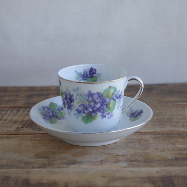 チェコスロバキア製 ビクトリア すみれ 忘れな草 花柄 コーヒーカップ ソーサー Victoria Czechoslovakia #220730-4 レトロ ヴィンテージ アンティーク 食器 陶器 東欧
