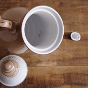 落ち着いたベージュの釉薬が美しいコーヒーポットです。