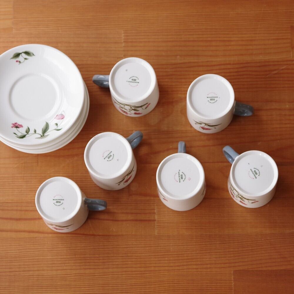 ウェッジウッド メイフィールド ブルーグレー 花柄 デミタスカップ ソーサー ヴィンテージ 食器 #220827-1~6 イギリス 陶器 アンティーク Wedgwood Mayfield エスプレッソ