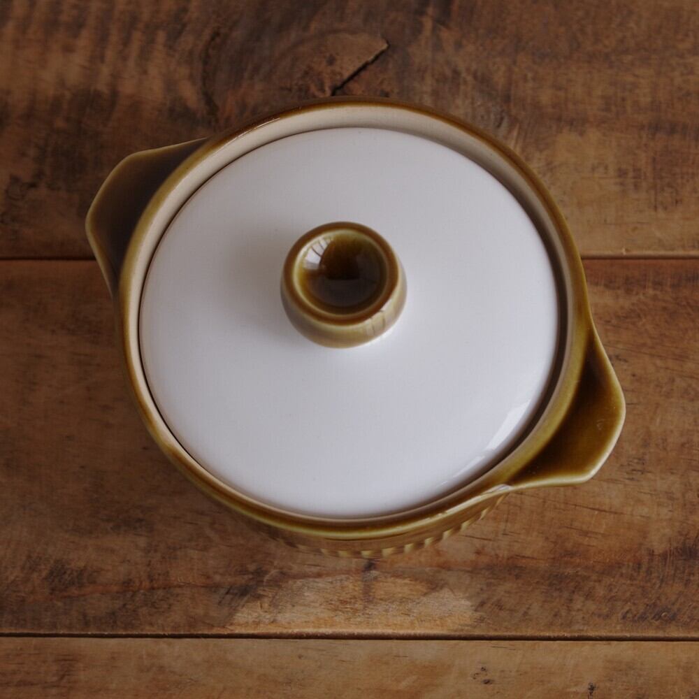 両脇に小さな持ち手のついた蓋つきのボウルです。