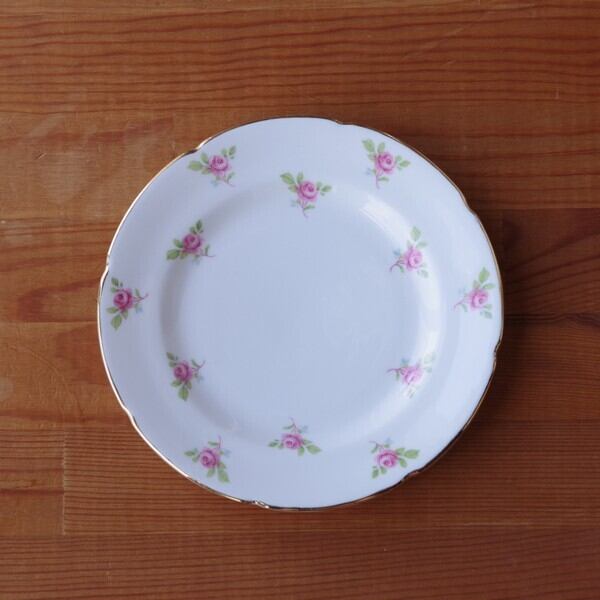 グラフトン ピンク バラ 花柄 デザートプレート ケーキ皿 16cm ヴィンテージ 食器 陶器 Grafton #221011-1~5 レトロ シャビー ローズ アンティーク ゴールド イギリス