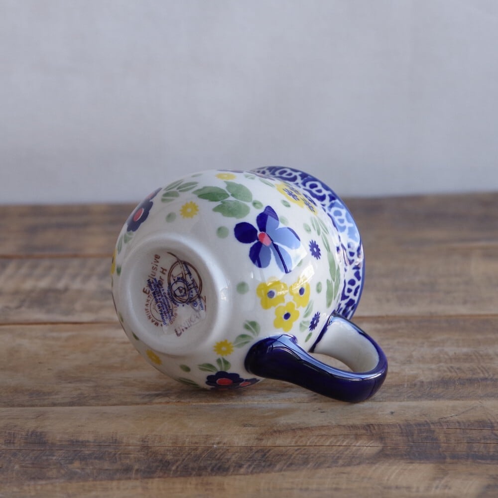 【再入荷】【新品】 ポーリッシュポタリー ポーランド 食器 マグカップ フラワー 花柄 イエロー ネイビー 200ml K67-ALC1 ボレスワヴィエツ 陶器 Boleslawiec レトロ 東欧 雑貨