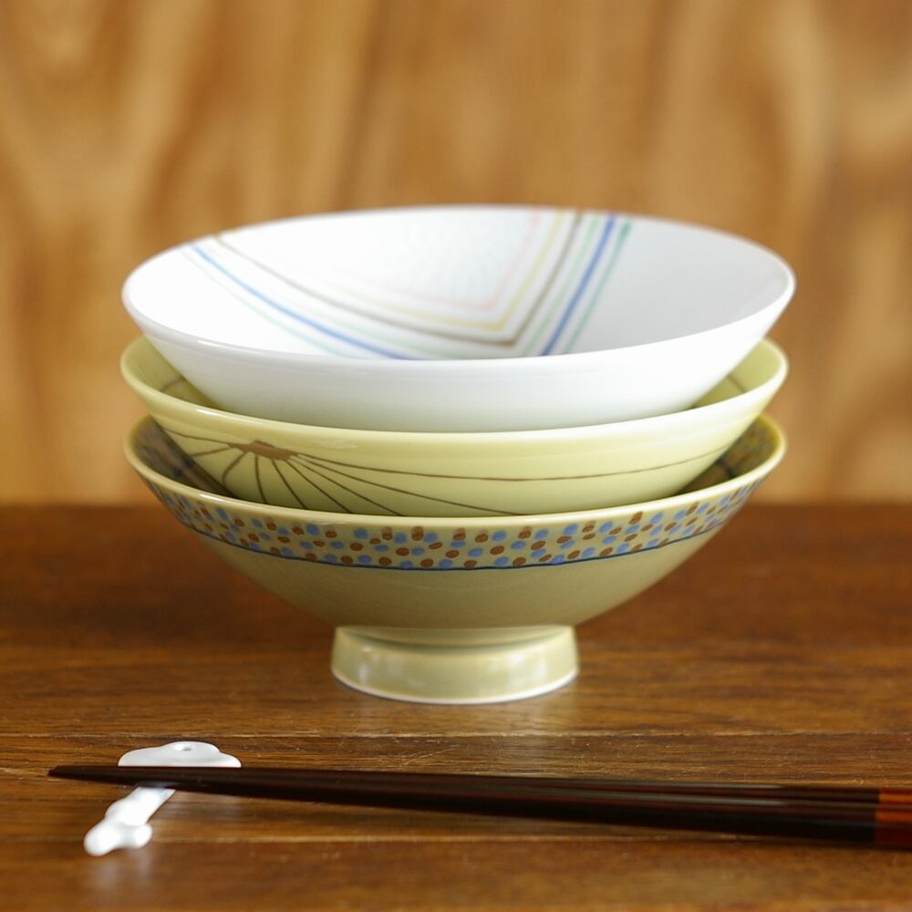 一般的な飯碗に比べると、径が大きめで浅型のお茶碗で食べやすいデザインです。