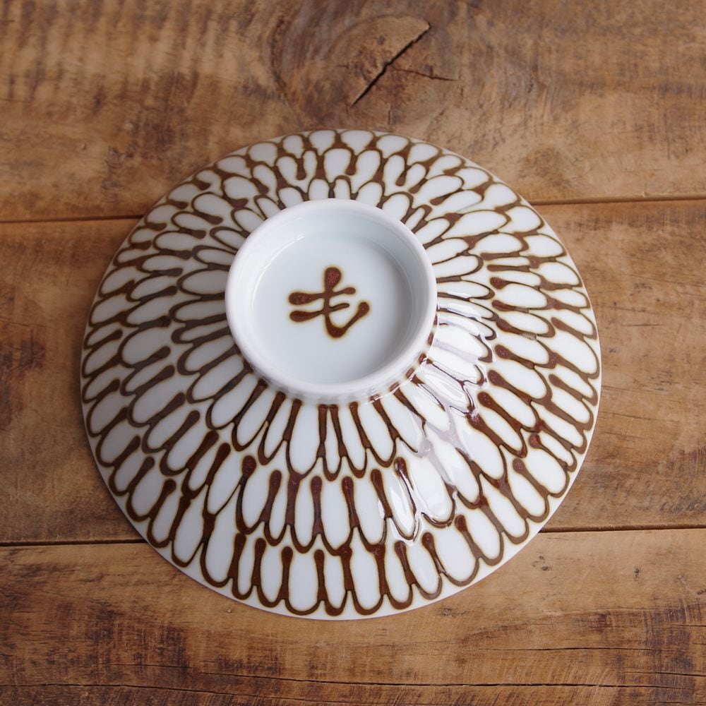 【再入荷】【新品】 白山陶器(波佐見焼) 平茶碗 飯碗 Q-54 錆び 菊 ブラウン レトロ ごはん茶碗