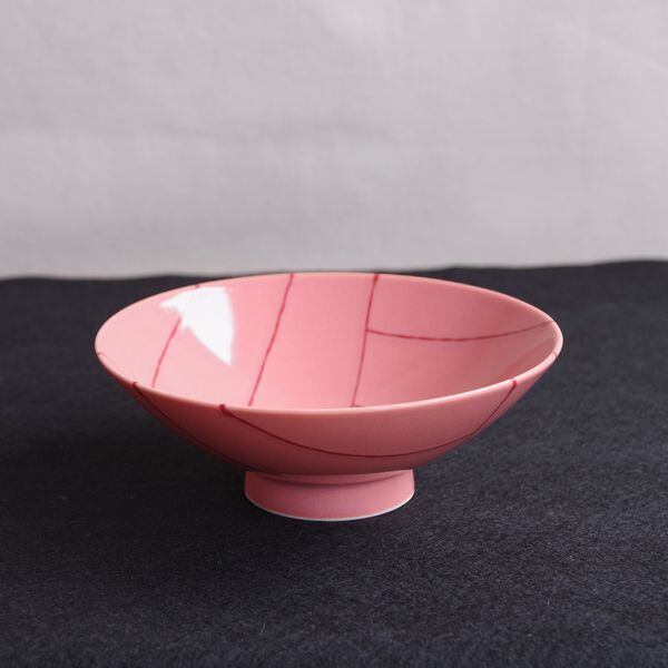 【再入荷】【新品】白山陶器(波佐見焼) 平茶碗 飯碗 RH-8 ピンク 赤 ライン ポップ