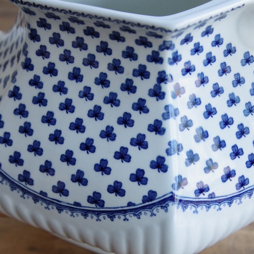 コバルトブルーのクローバー柄が入った、クラシカルな雰囲気のティーポットです。