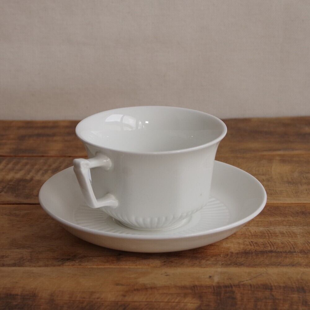 シンプルな白一色のカップで、クラシカルな上品さを感じられるデザインです。