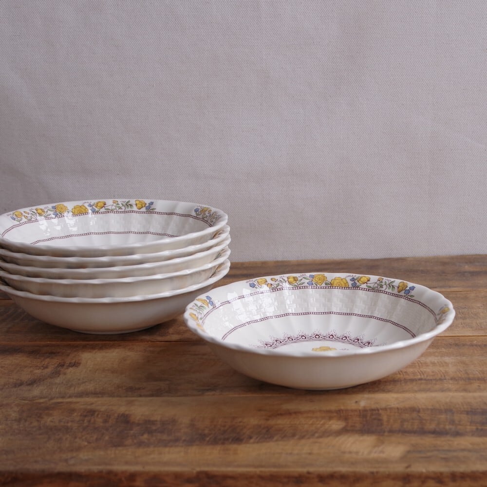 スポード バターカップ キンポウゲ 花柄 デザートボウル 小鉢 深皿 16cm イギリス アンティーク 食器 陶器 #221124-1~6 SPODE Buttercup ビンテージ ウィッカー Copeland
