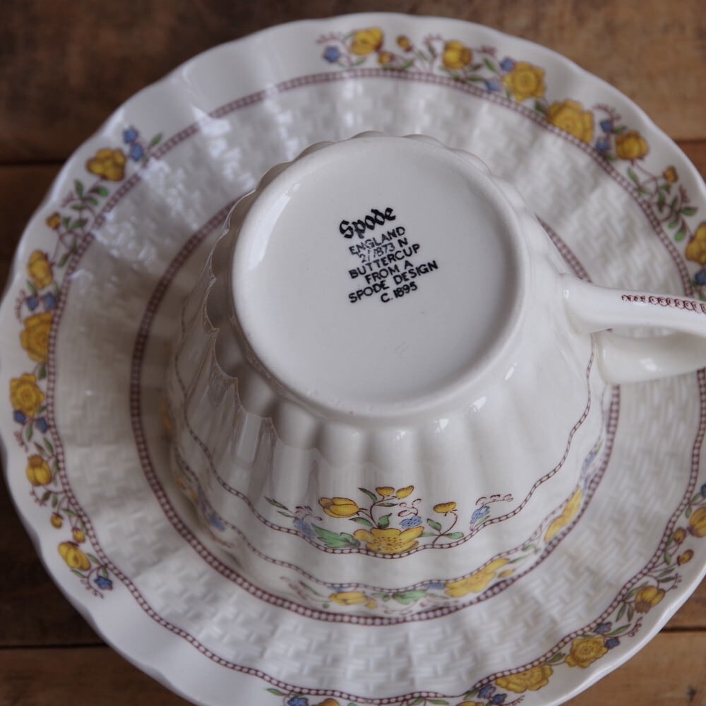 スポード バターカップ キンポウゲ 花柄 コーヒーカップ ソーサー イギリス アンティーク 食器 陶器 #221124-1 SPODE Buttercup ビンテージ ウィッカー Copeland