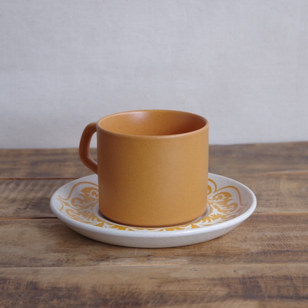 ソーサーは白地にオレンジでダマスク柄のような模様が入っています。