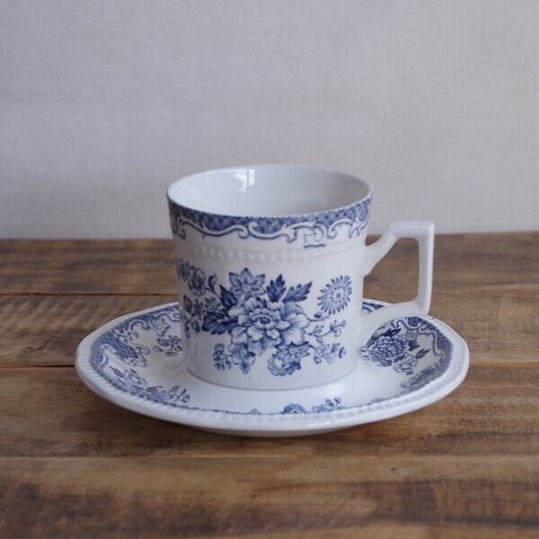 ケンジントン バルモラル Kensington Balmoral ブルー コーヒーカップ ソーサー ヴィンテージ 食器 #221210-5 アンティーク 陶器 イギリス製 Staffordshire レトロ 花柄