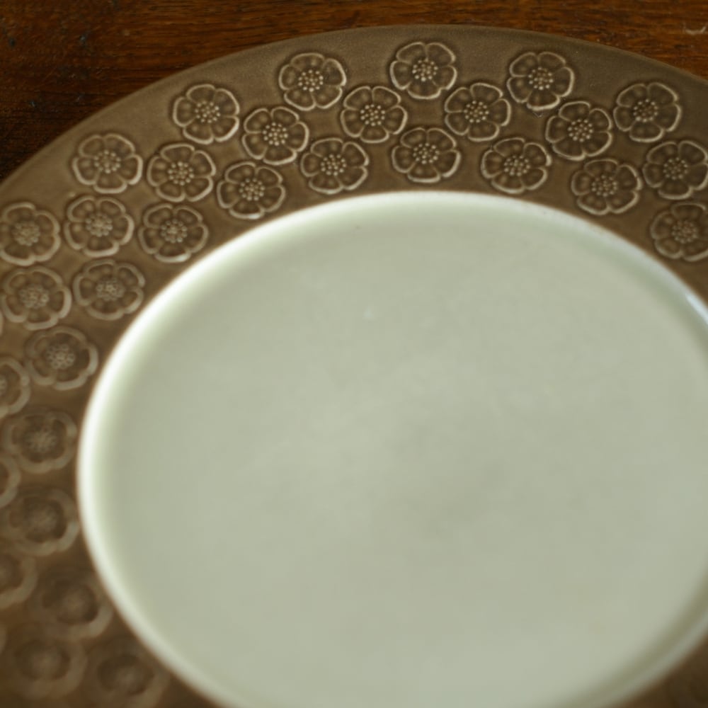 落ち着いたマットブラウンの釉薬と、梅の花のようなレリーフがおしゃれで、