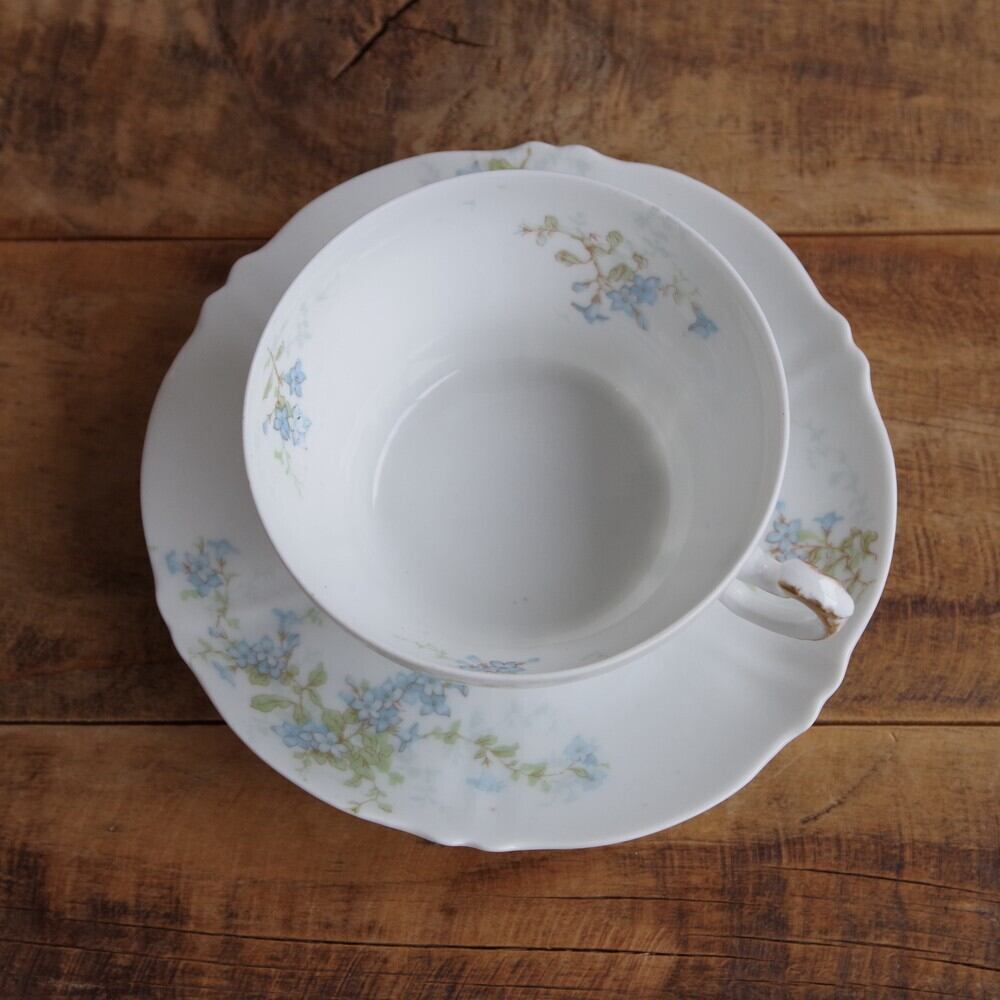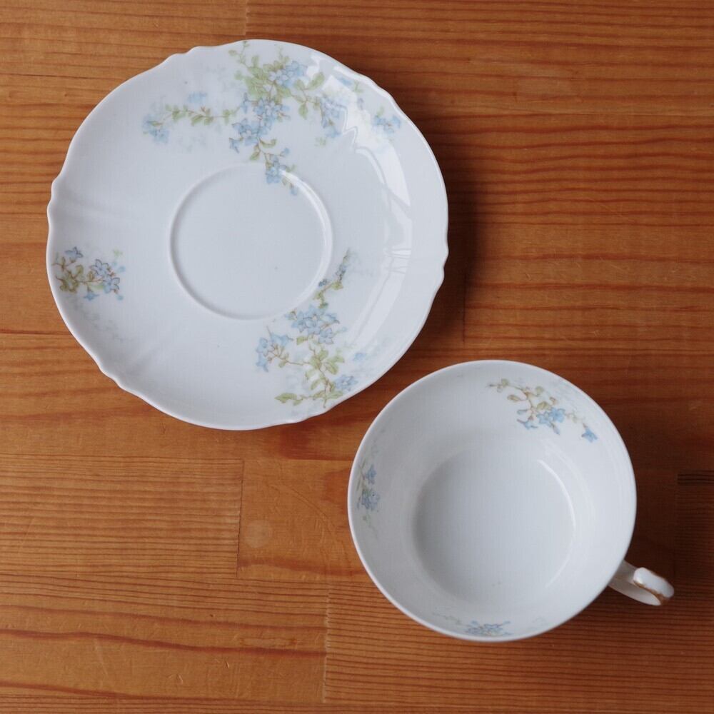 フランス アンティーク 食器 リモージュ アビランド ブルー 花柄 ティーカップ ソーサー #221217-1 Limoges Theodore Haviland France ゴールド 陶器