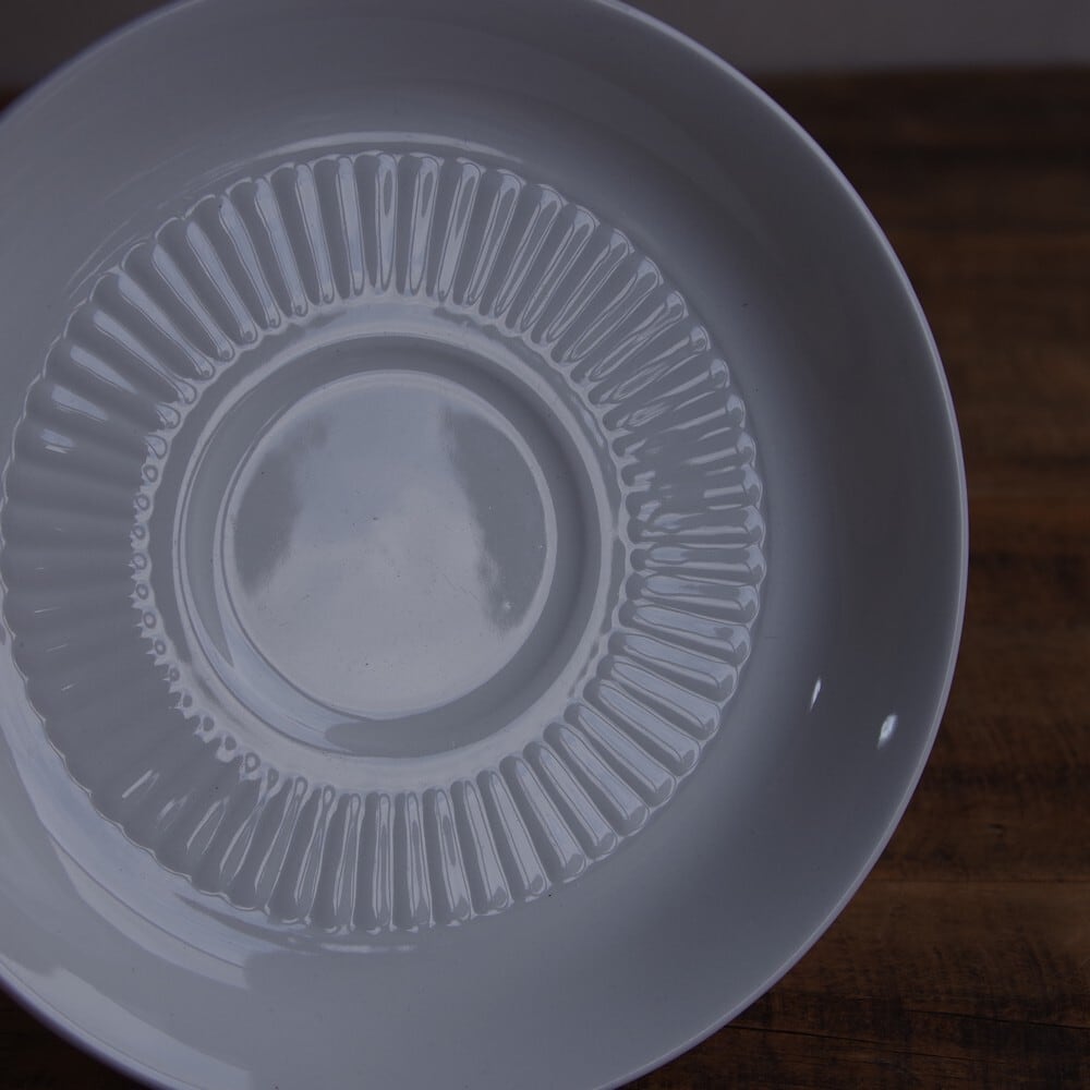 カップの下部やソーサー中央付近に、筋状のレリーフが、