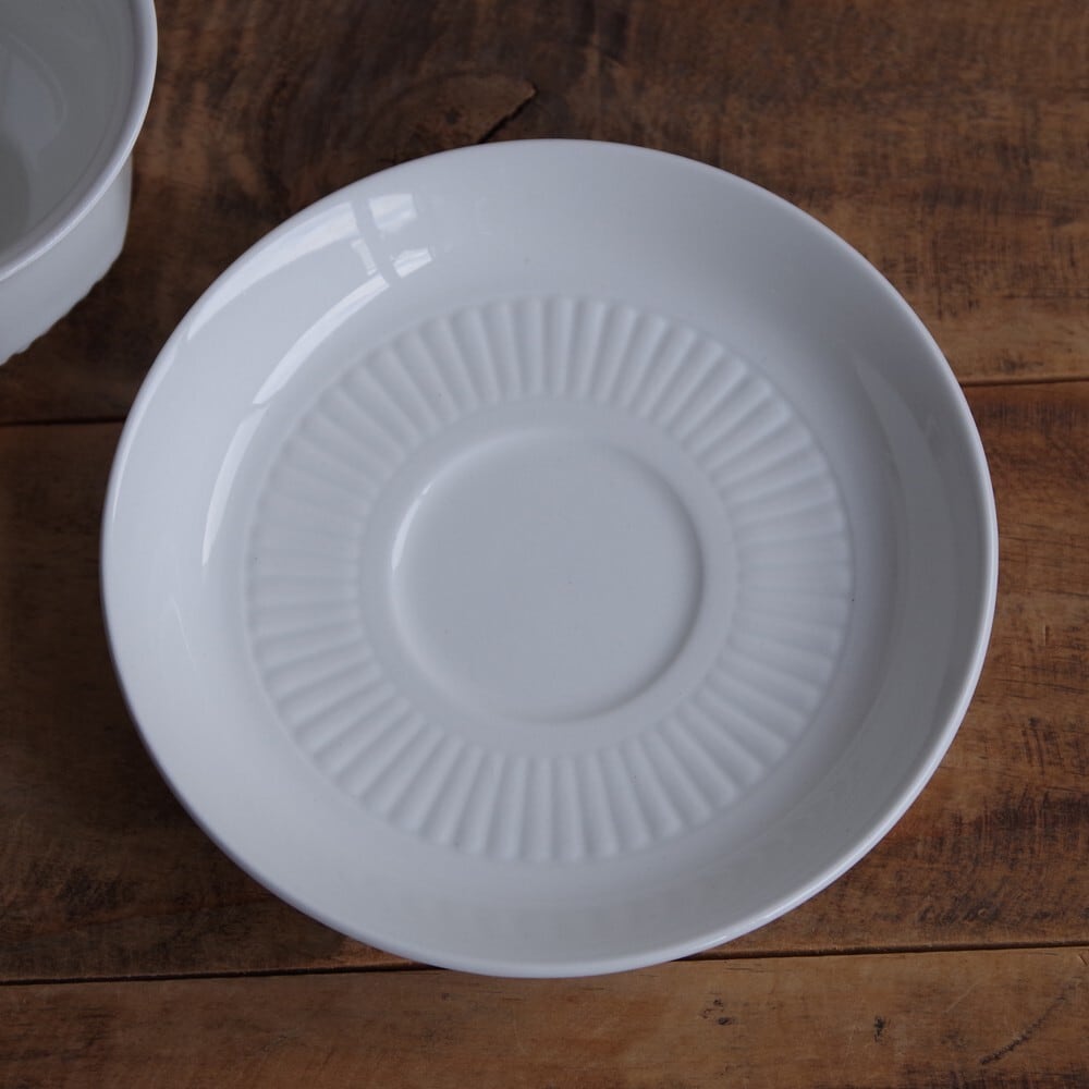 シンプルな白一色のカップで、クラシカルな上品さを感じられるデザインです。