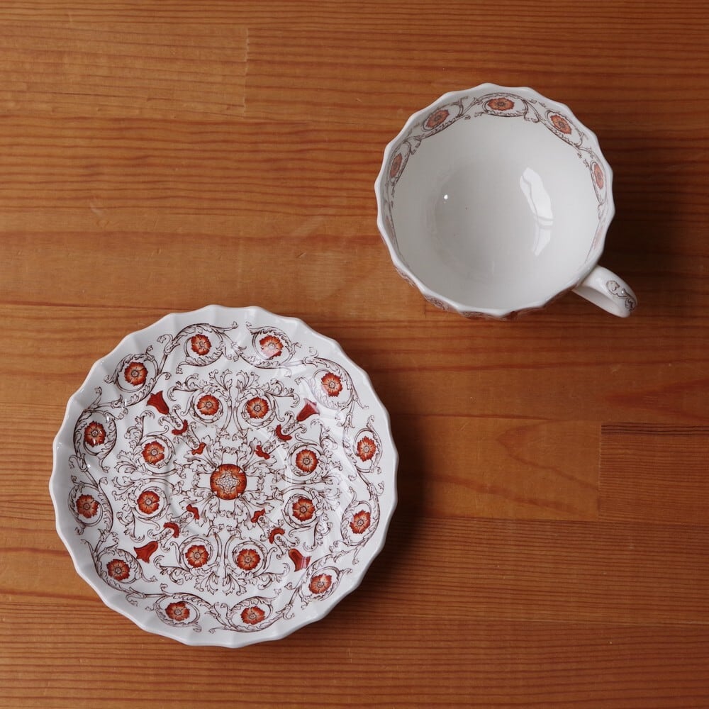 スポード ソレント ティーカップ ソーサー Spode Sorrento 赤 コープランド Copeland #221227 イギリス ビンテージ アンティーク 食器 陶器 ボタニカル