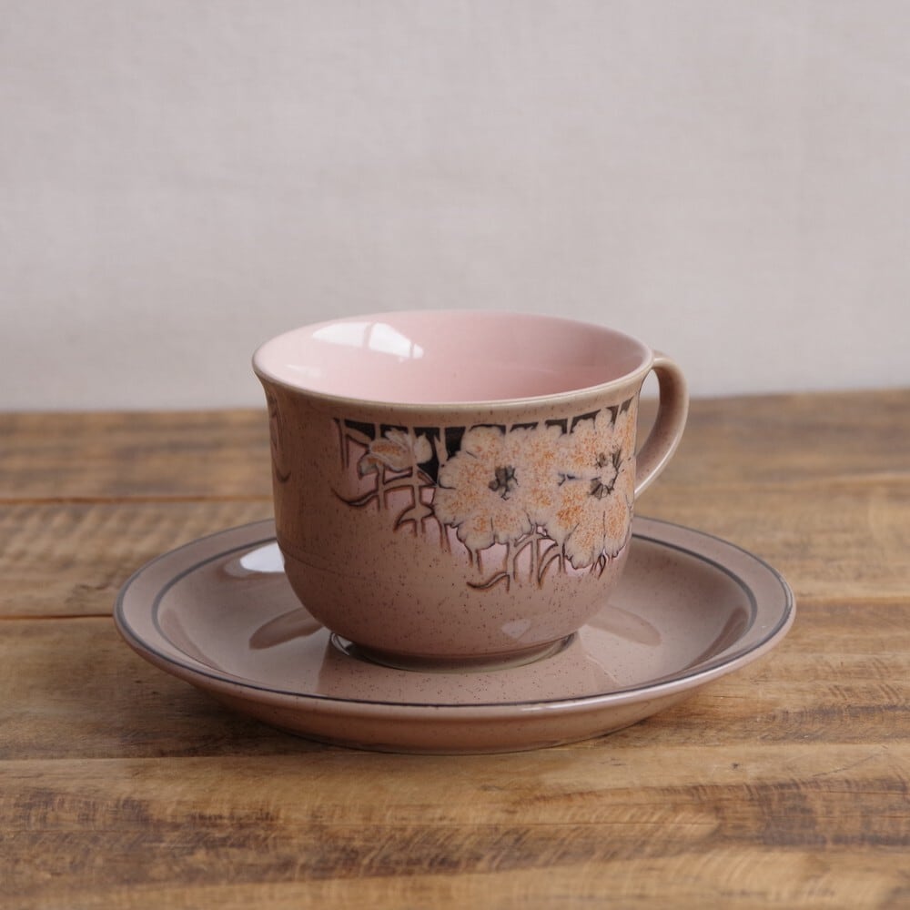 DENBY Sumatra デンビー スマトラ コーヒーカップ ソーサー ピンク ベージュ 花柄 #221228-5,6 イギリス製 ビンテージ 食器 アンティーク レトロ