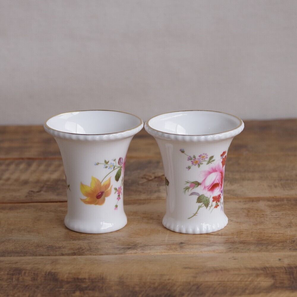 2個セット ロイヤルクラウンダービー ポウジーズ ピンク 花柄 ショットグラス Royal Crown Derby Posies #221228 イギリス ヴィンテージ 陶器 デイジー 薔薇 レトロ シャビー