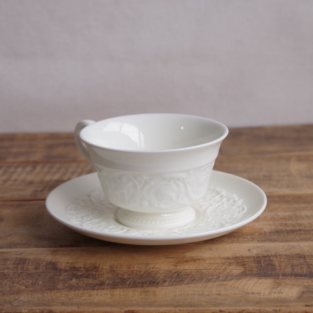 ヴィンテージ 食器 ウェッジウッド Patrician パトリシアン ティーカップ ソーサー クリーム色 アイボリー #230120-3 アンティーク Wedgwood レリーフ 花 ボタニカル 陶器