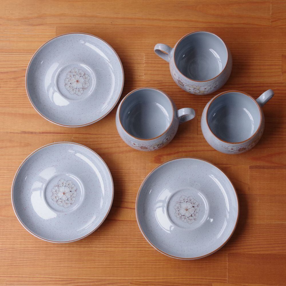 デンビー リフレクションズ 花柄 ティーカップ ソーサー イギリス ヴィンテージ 食器 陶器 レトロ #230127-1~3 アンティーク DENBY Reflections ブルーグレー
