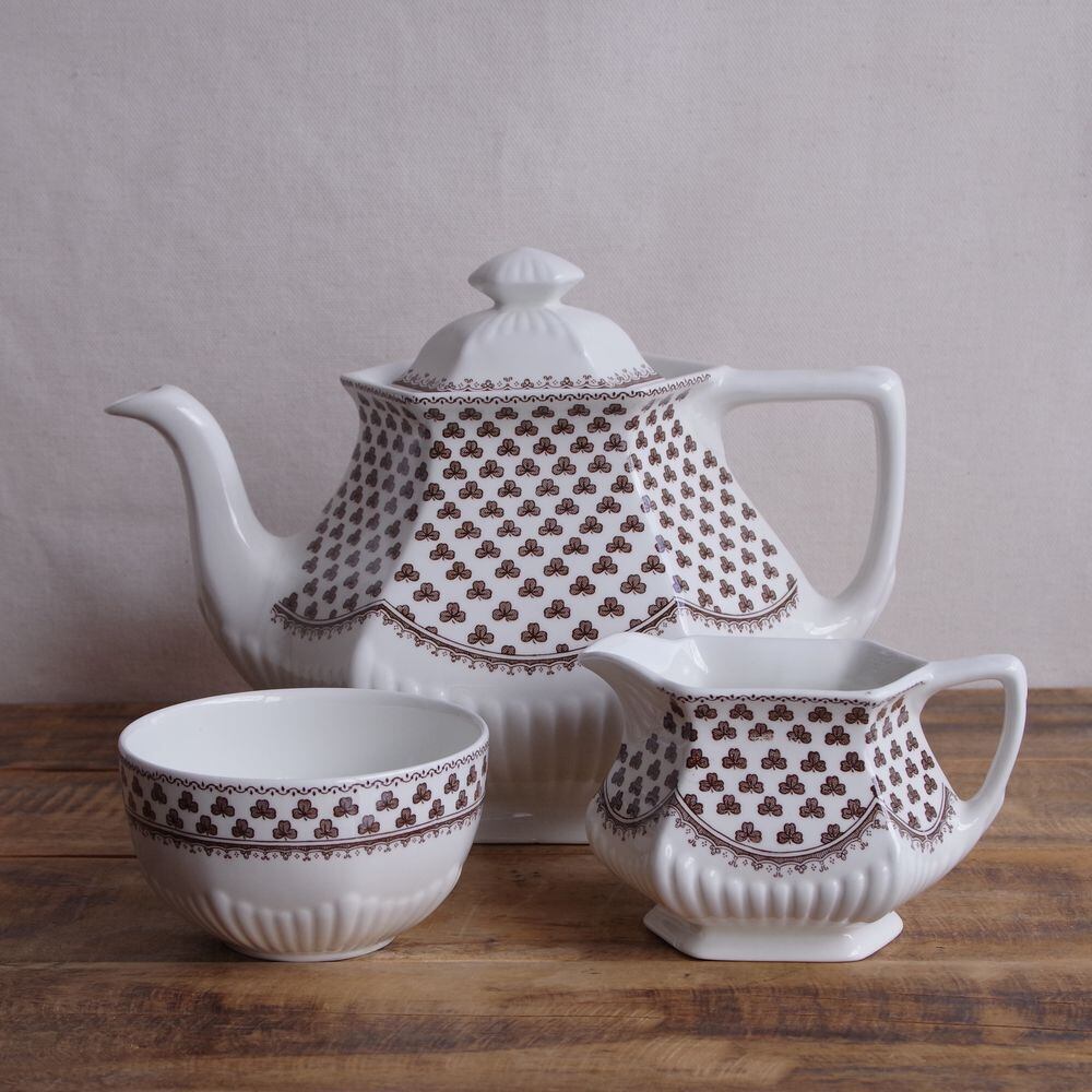 アダムス シャロン クローバー柄 シュガーボウル 小鉢 Adams Sharon ブラウン レトロ ヴィンテージ 陶器 #230205 イギリス 食器 アンティーク