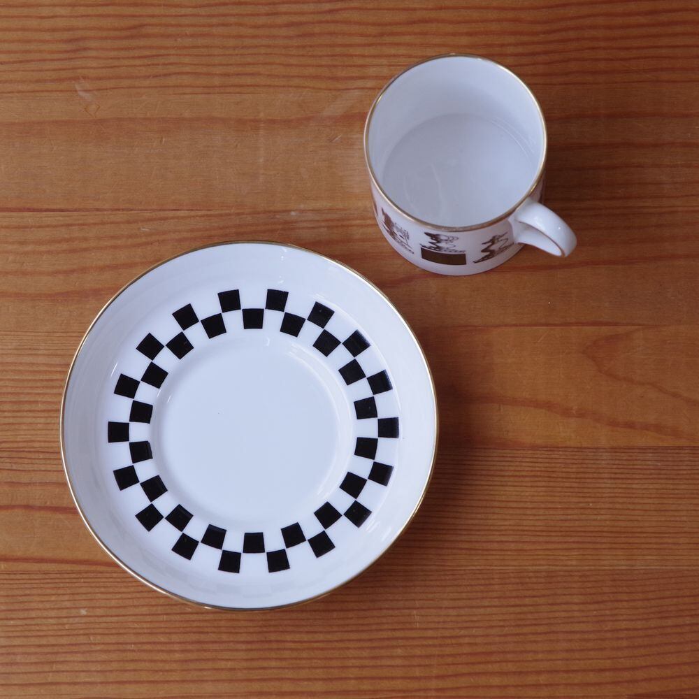 ソーサーにはチェス盤を模して白黒の市松模様が入り、