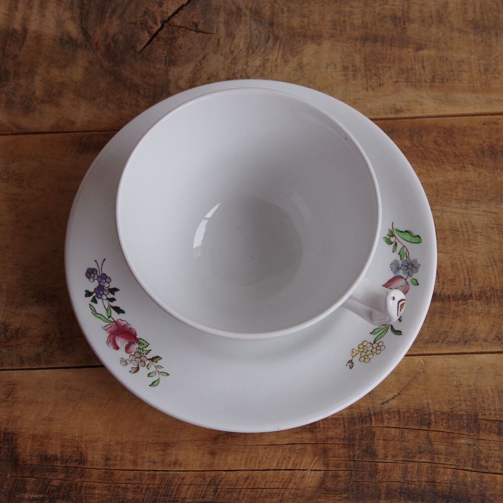 スポード 薔薇 バスケット 花柄 ティーカップ ソーサー ピンク 紫 レトロ Spode #230221-1 イギリス アンティーク ヴィンテージ 食器 陶器
