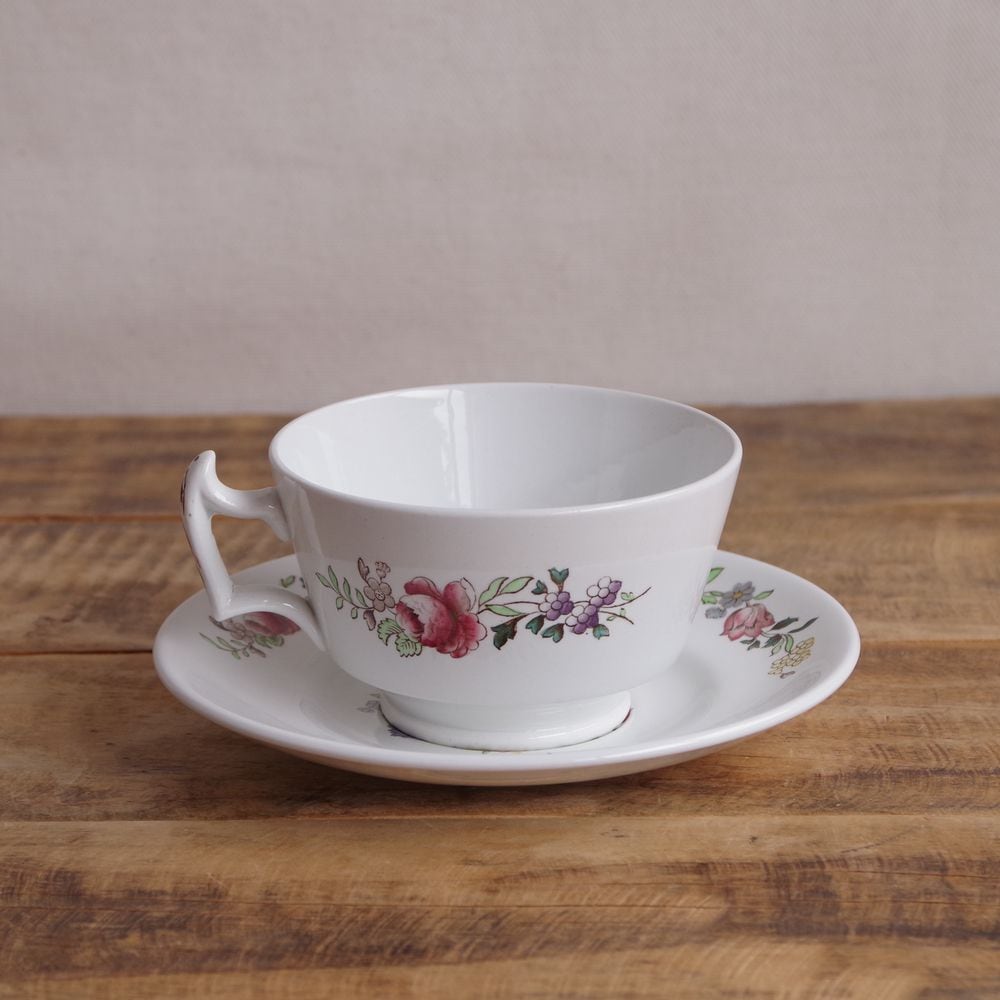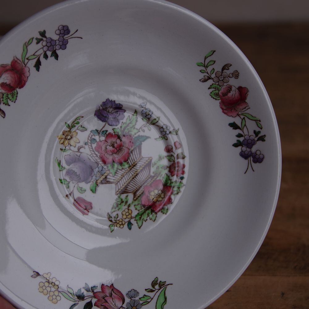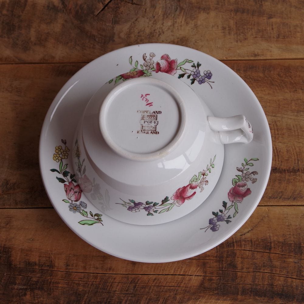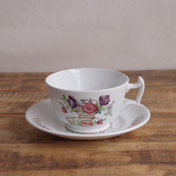 スポード 薔薇 バスケット 花柄 ティーカップ ソーサー ピンク 紫 レトロ Spode #230221-2 イギリス アンティーク ヴィンテージ 食器 陶器