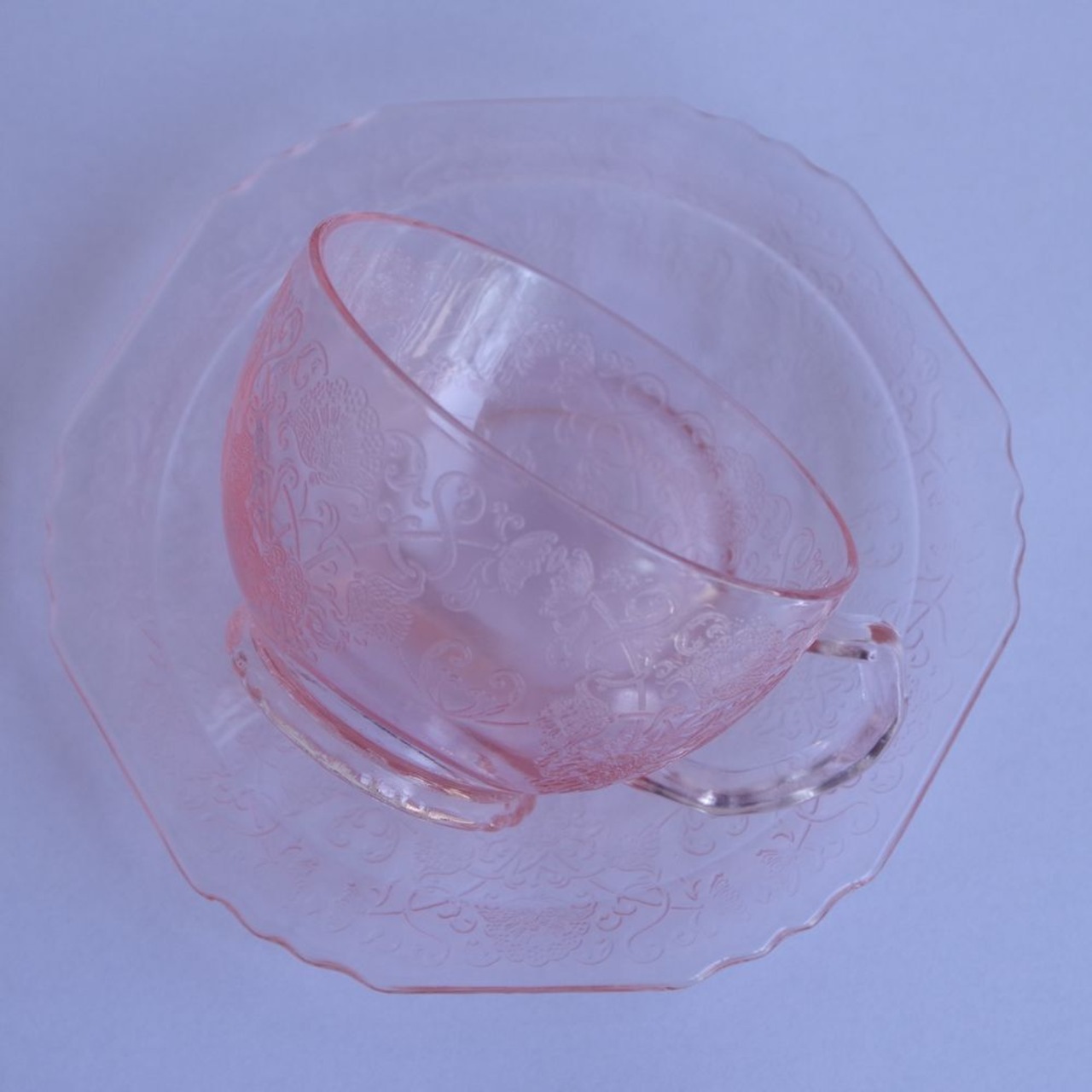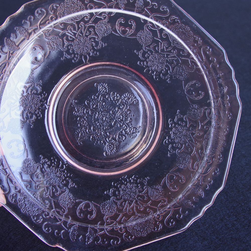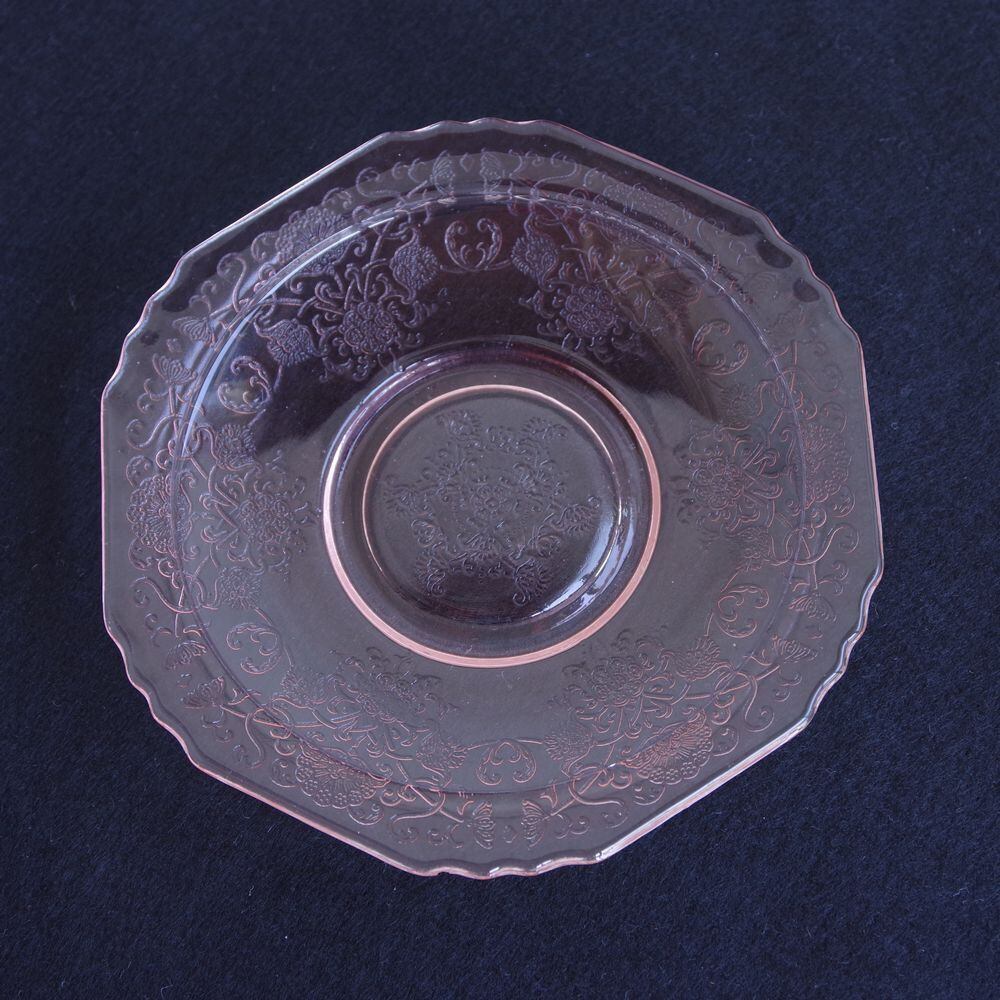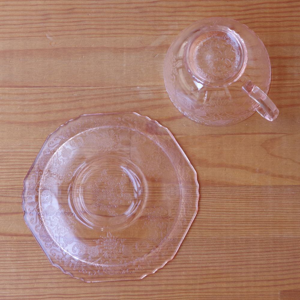 ヘーゼルアトラス フロレンティーン ピンク ガラス コーヒーカップ ソーサー Hazel Atlas Florentine #230222-3 アメリカ製 ヴィンテージ 食器 レトロ 雑貨