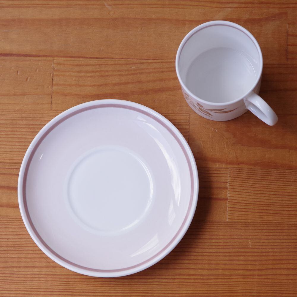 ソーサーのリム部分にも同じトーンのピンク色が塗られています。