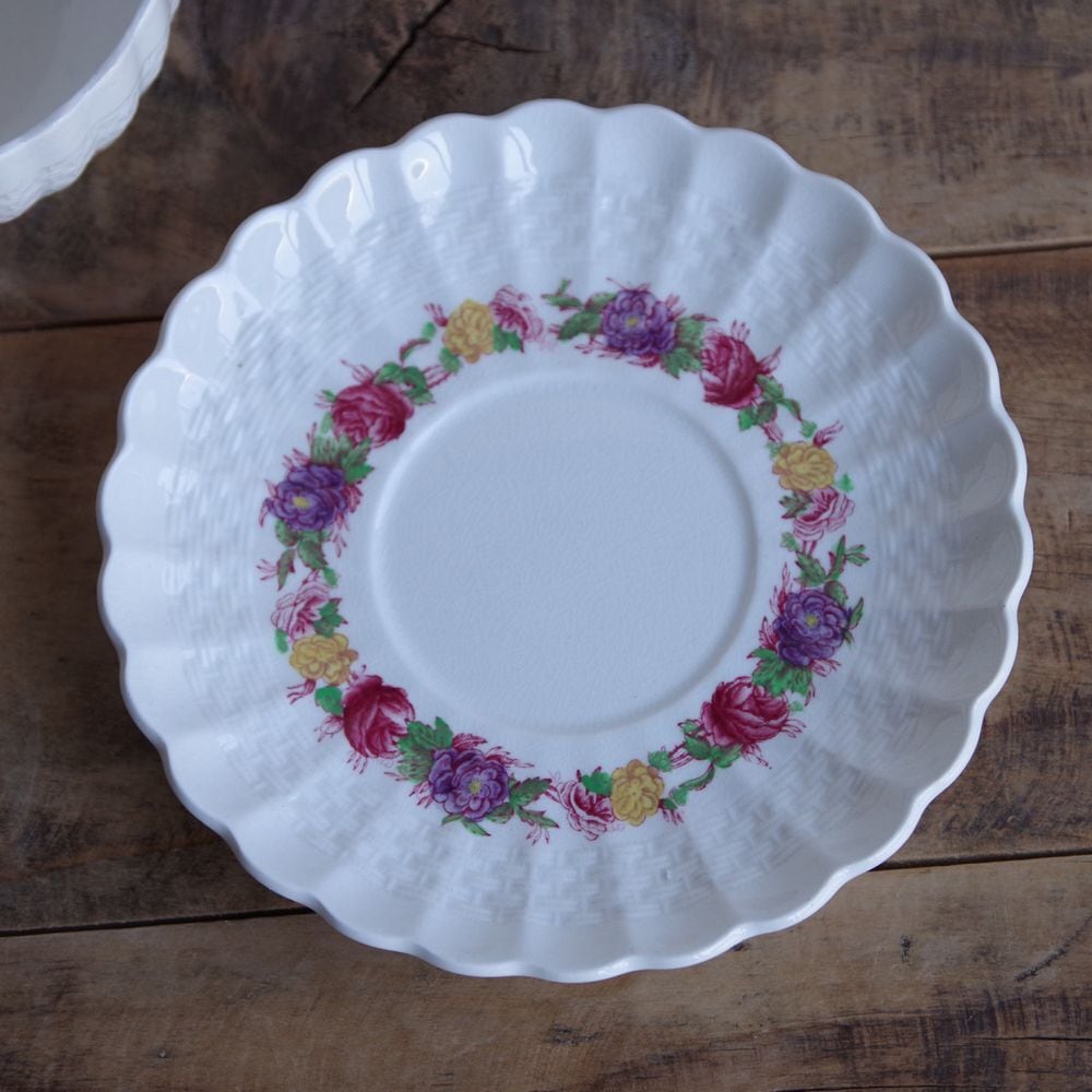 ピンクや黄色、紫などの薔薇の花がリング状に描かれた華やかなデザインです。