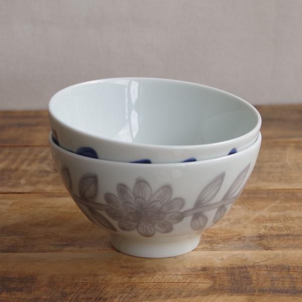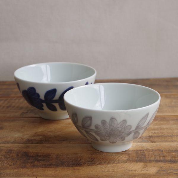 【再入荷】【新品】 波佐見焼 (はさみやき) デイジー 飯碗 ご飯茶碗 ボウル 北欧風 ボタニカル柄 花柄 ネイビー グレー おしゃれ 日本製 陶磁器 モダン