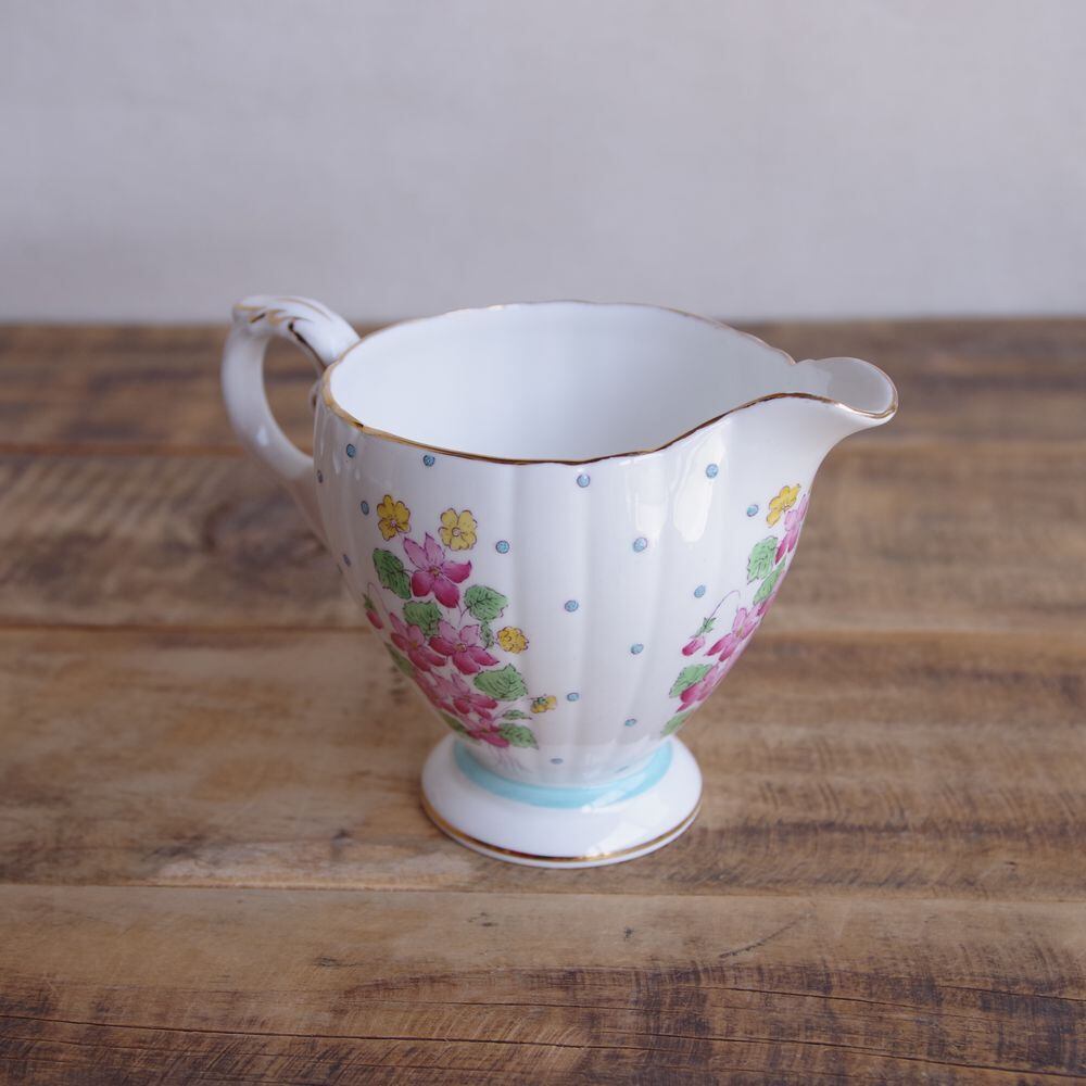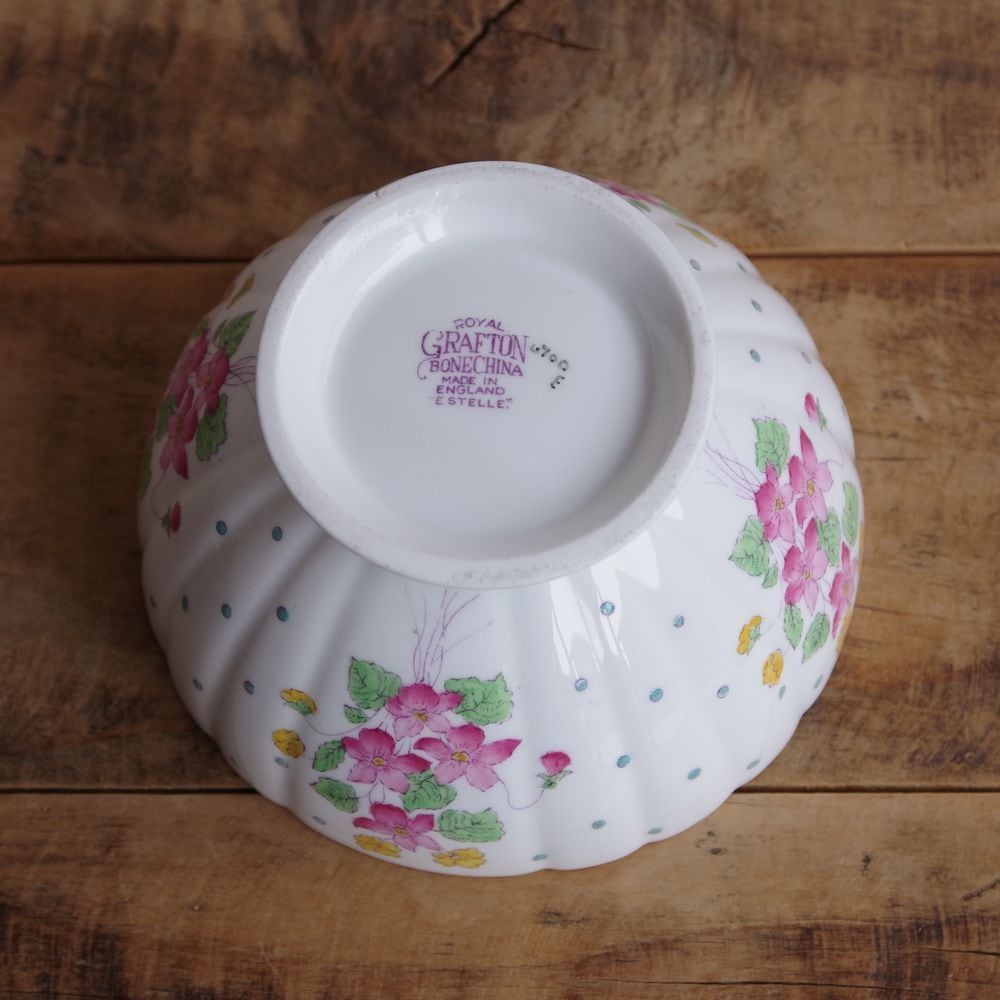 ロイヤルグラフトン エステール すみれ キンポウゲ 花柄 水玉 シュガーボウル クリーマー 小鉢 ミルク入れ Royal Grafton Estelle ヴィンテージ #230309 イギリス アンティーク 陶器 食器 ドット柄 レトロ