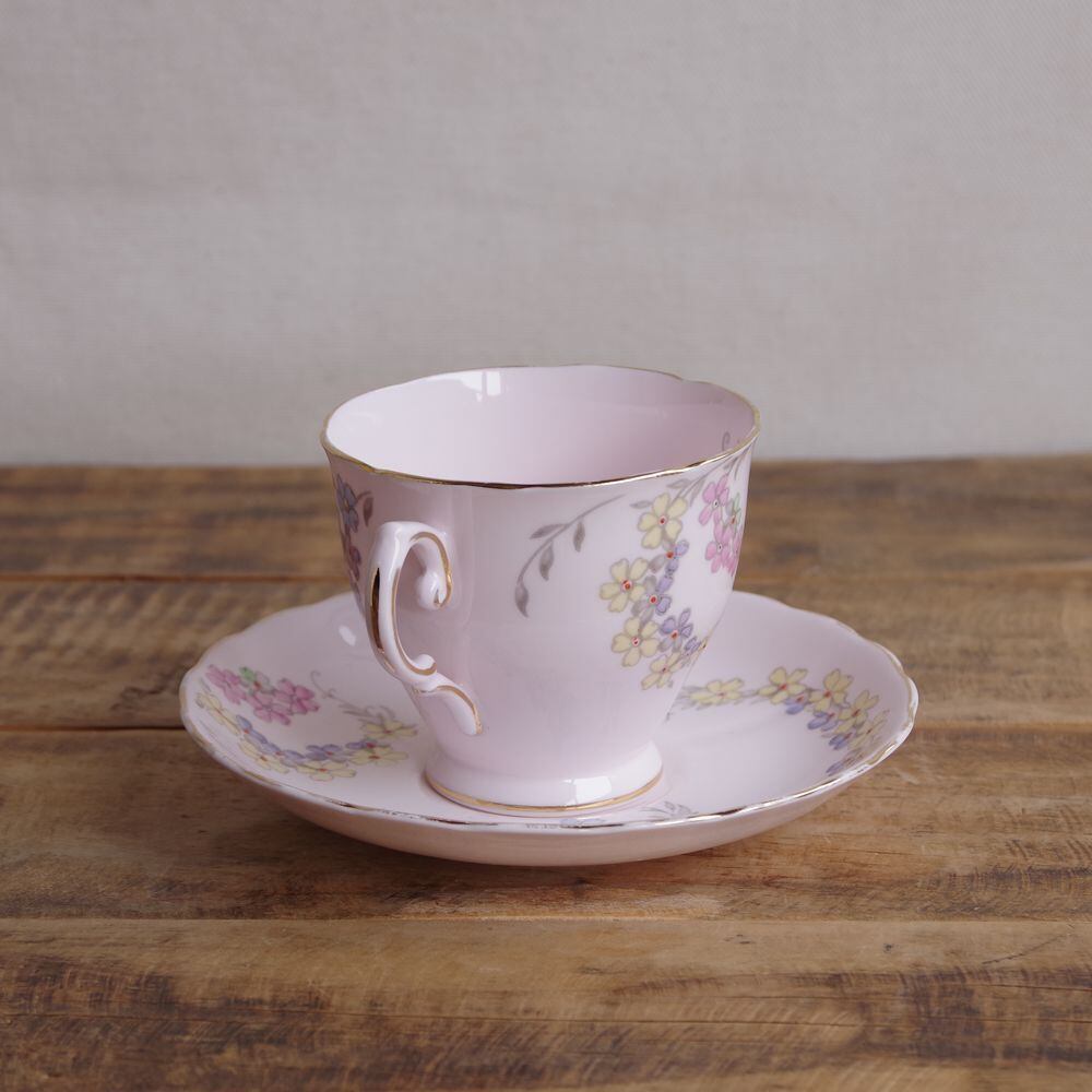 トスカン ピンク 手描き 花柄 コーヒーカップ ソーサー Tuscan タスカン ヴィンテージ #230309-1 イギリス アンティーク 陶器 食器 パステルカラー レトロ