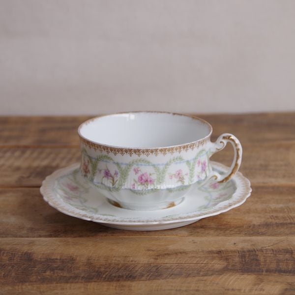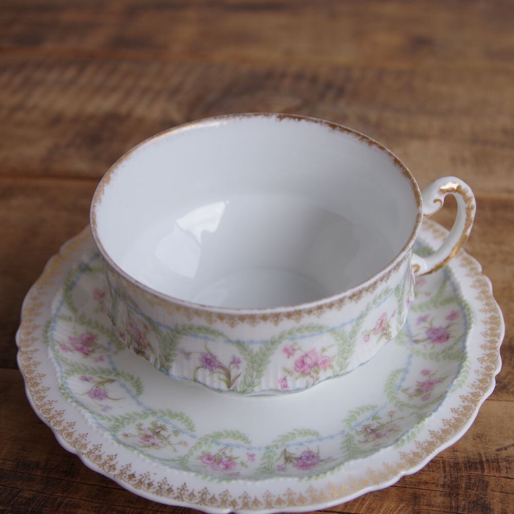 フランス アンティーク 食器 リモージュ セオドア・アビランド 花柄 リーフ柄 金彩 ティーカップ ソーサー #230310-1 Theodore Limoges Haviland France