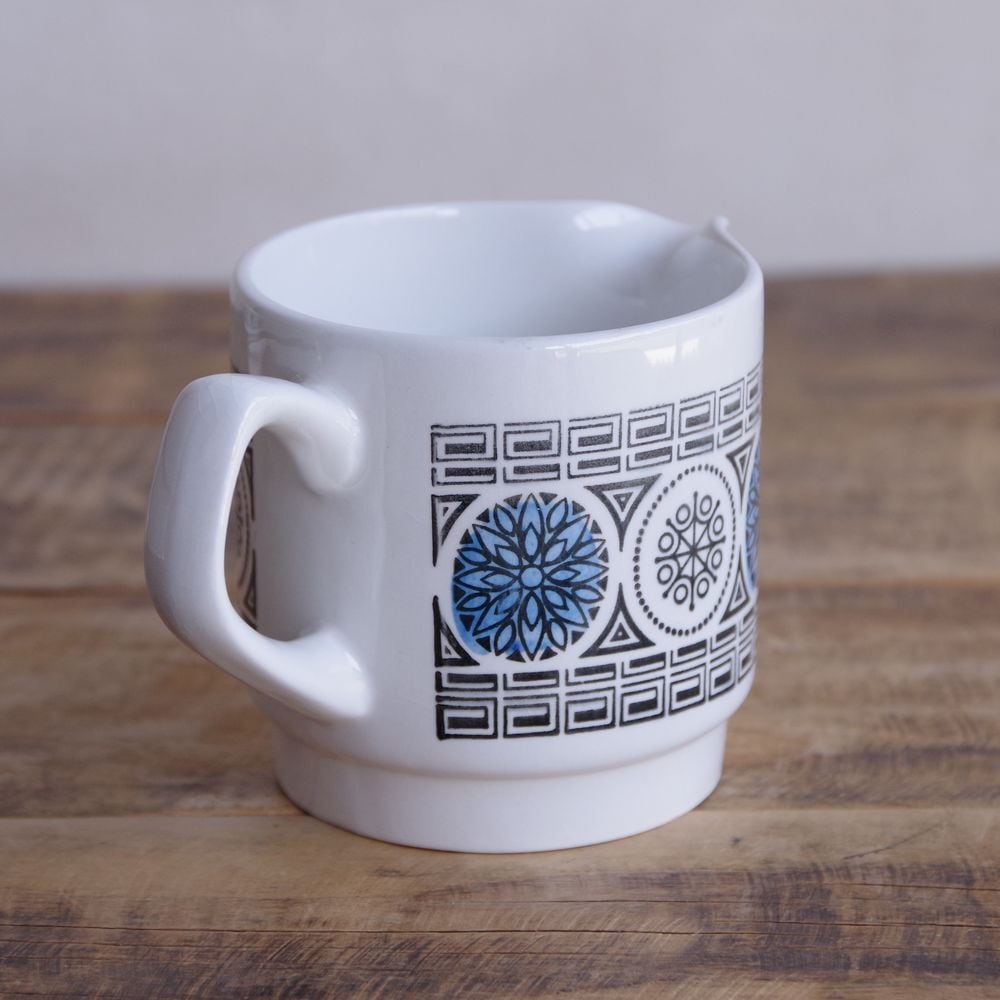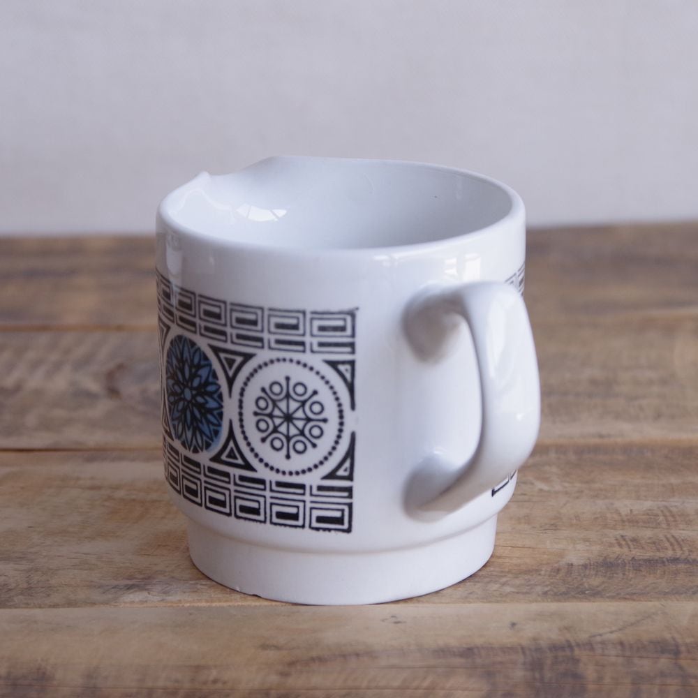 ビルトンズ ブルー メダル 花柄 グリークキー シュガーボウル クリーマー 小鉢 ミルク入れ レトロモダン Biltons Staffordshire #230311 イギリス ヴィンテージ 食器 陶器 ミッドセンチュリー