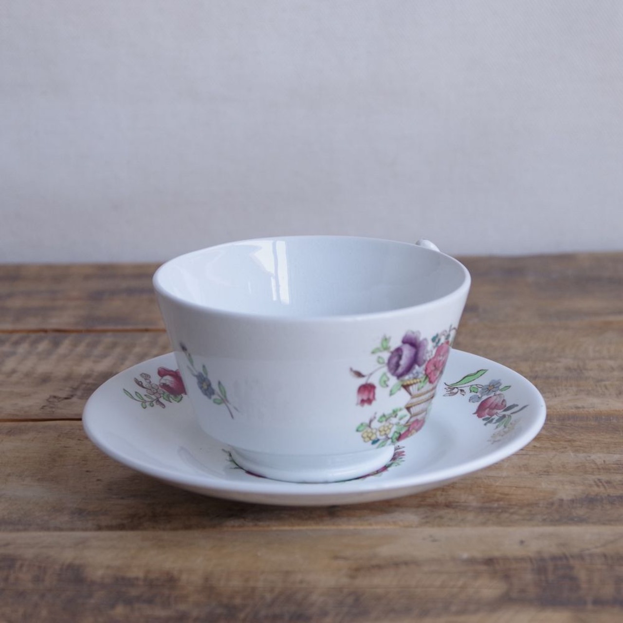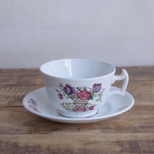 スポード 薔薇 バスケット 花柄 ティーカップ ソーサー ピンク 紫 レトロ Spode #230504-5 イギリス アンティーク ヴィンテージ 食器 陶器