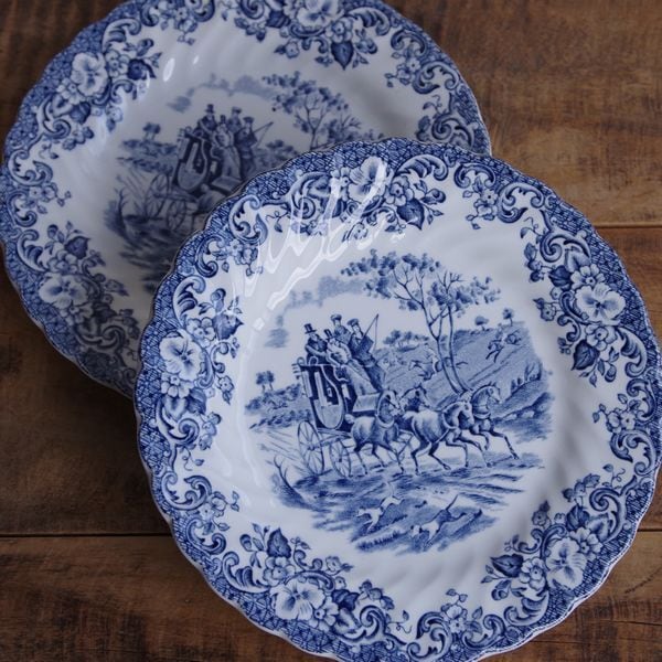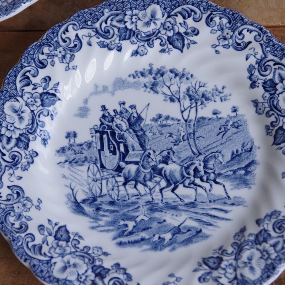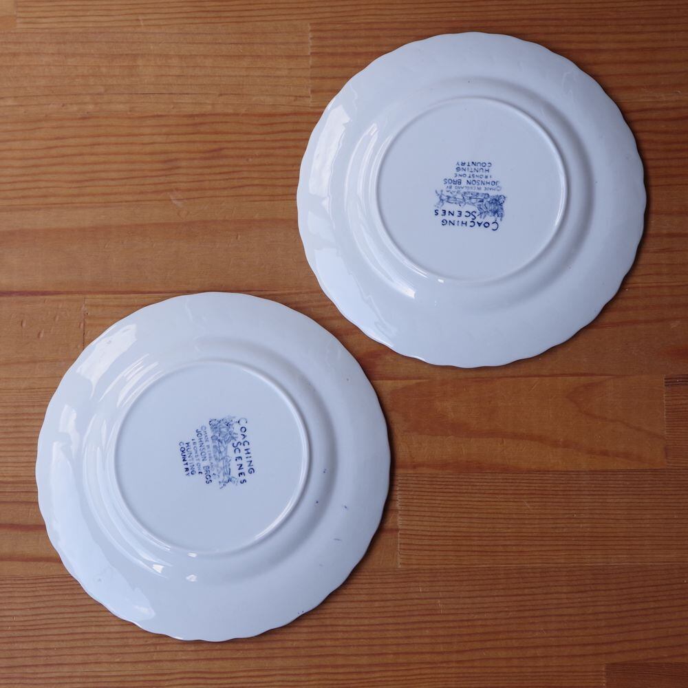 2枚セット ジョンソンブラザーズ コーチングシーン 馬車 ブルー デザートプレート ケーキ皿 16cm レトロ ヴィンテージ 食器 #230514 Johnson Bros. Coaching Scenes Hunting Country