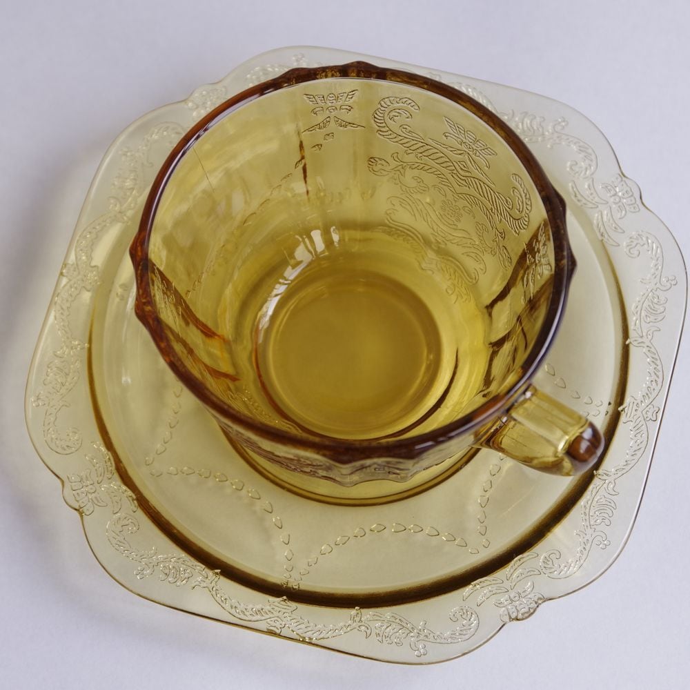 ヴィンテージ ガラス 食器 カップ フェデラルグラス マドリッド イエロー アンバー ティーカップ ソーサー レトロ トパーズ #230902-1~3 Federal Glass Madrid アメリカ モダン