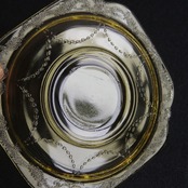 淡い黄色のガラス製で、カップ側面やソーサーの裏側に