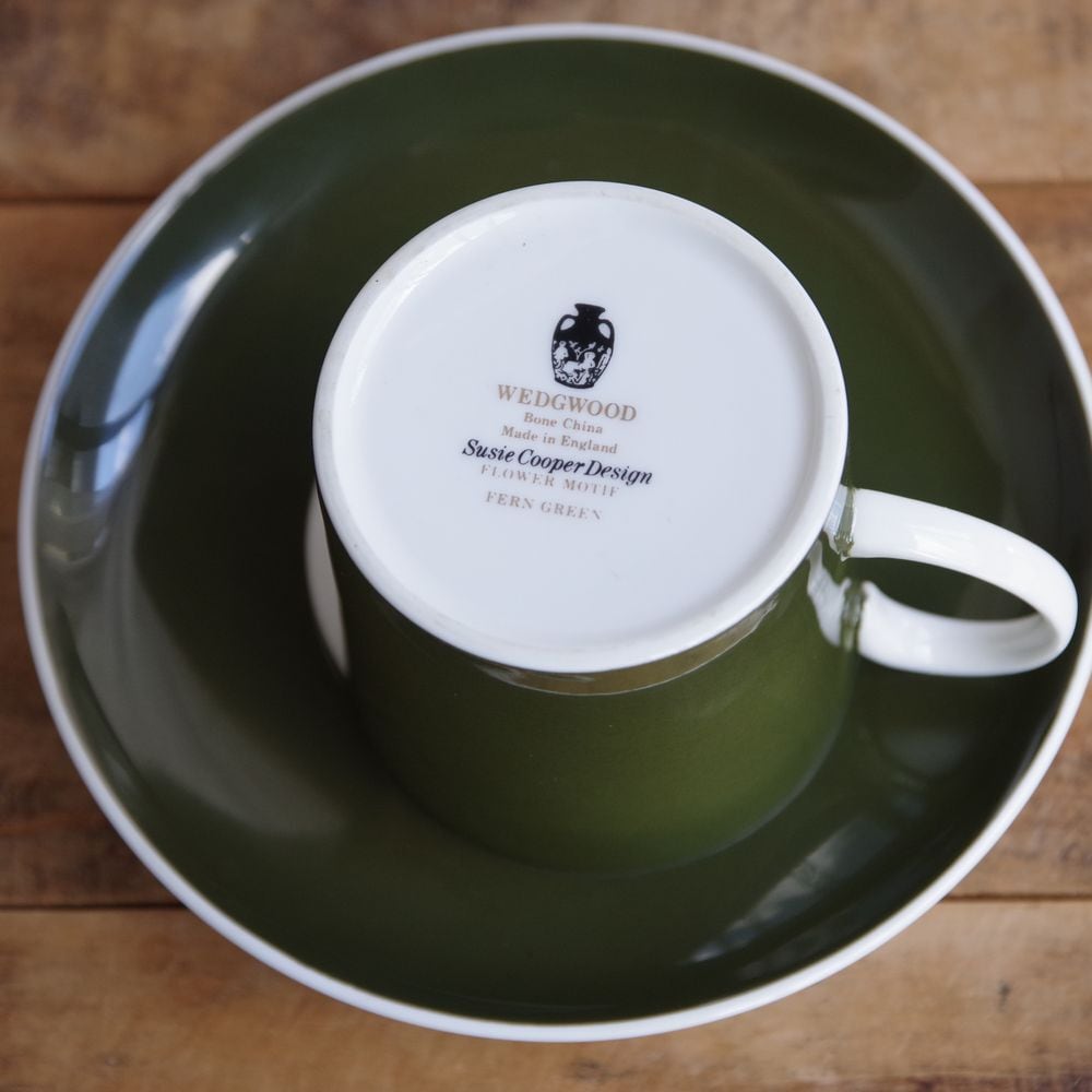 スージークーパー スミレ 花柄 コーヒーカップ ソーサー グリーン Susie Cooper ヴィンテージ 食器 #230909-3 アンティーク 陶器 レトロ Flower Motive Fern Green