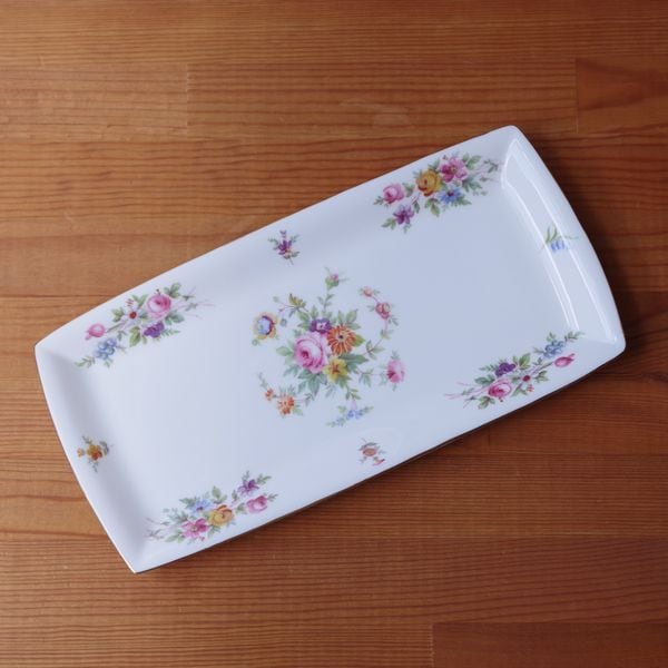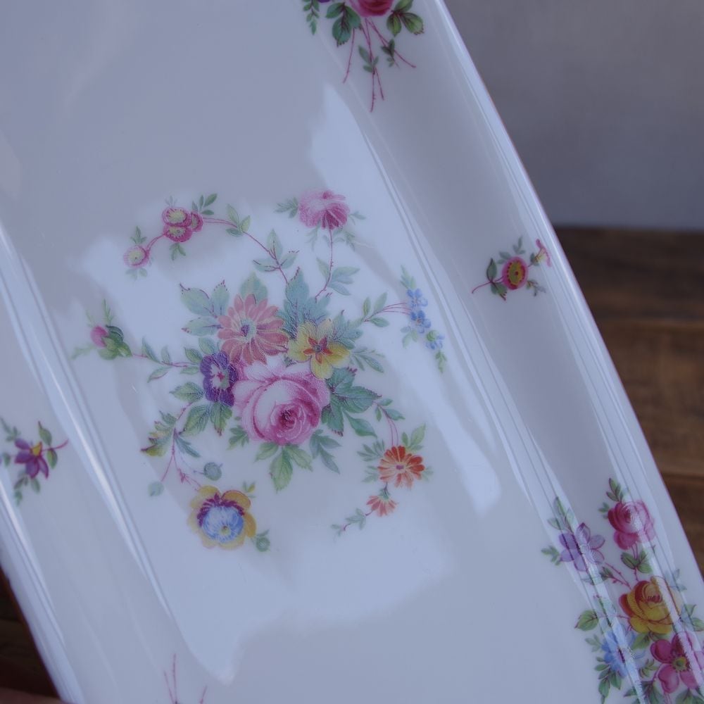 ミントン プレート 長角皿 お皿 盛り皿 マーロー 薔薇 花柄 28cm イギリス ヴィンテージ 食器 陶器 Minton Marlow #230912 ゴールド パンジー ブーケ レトロ デイジー