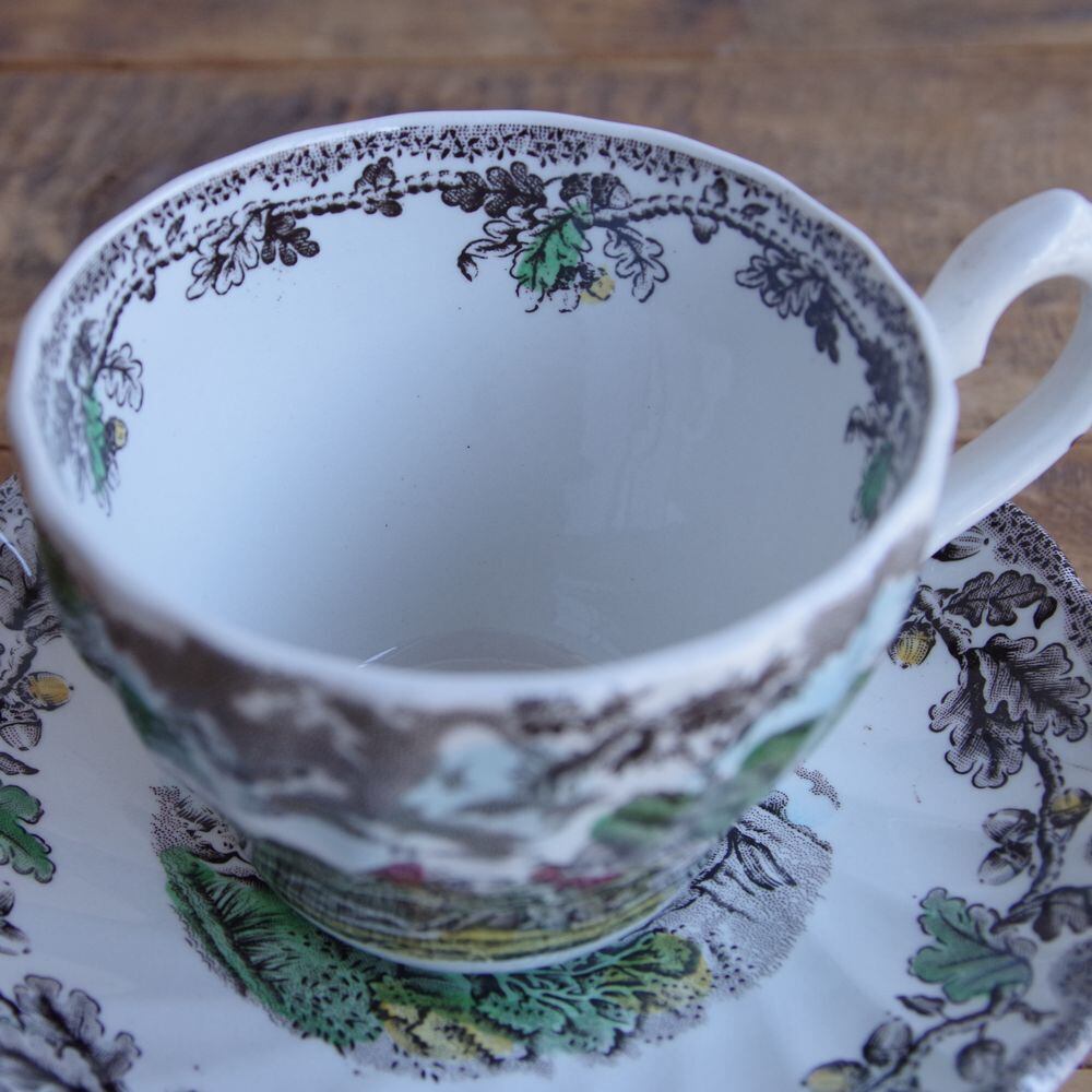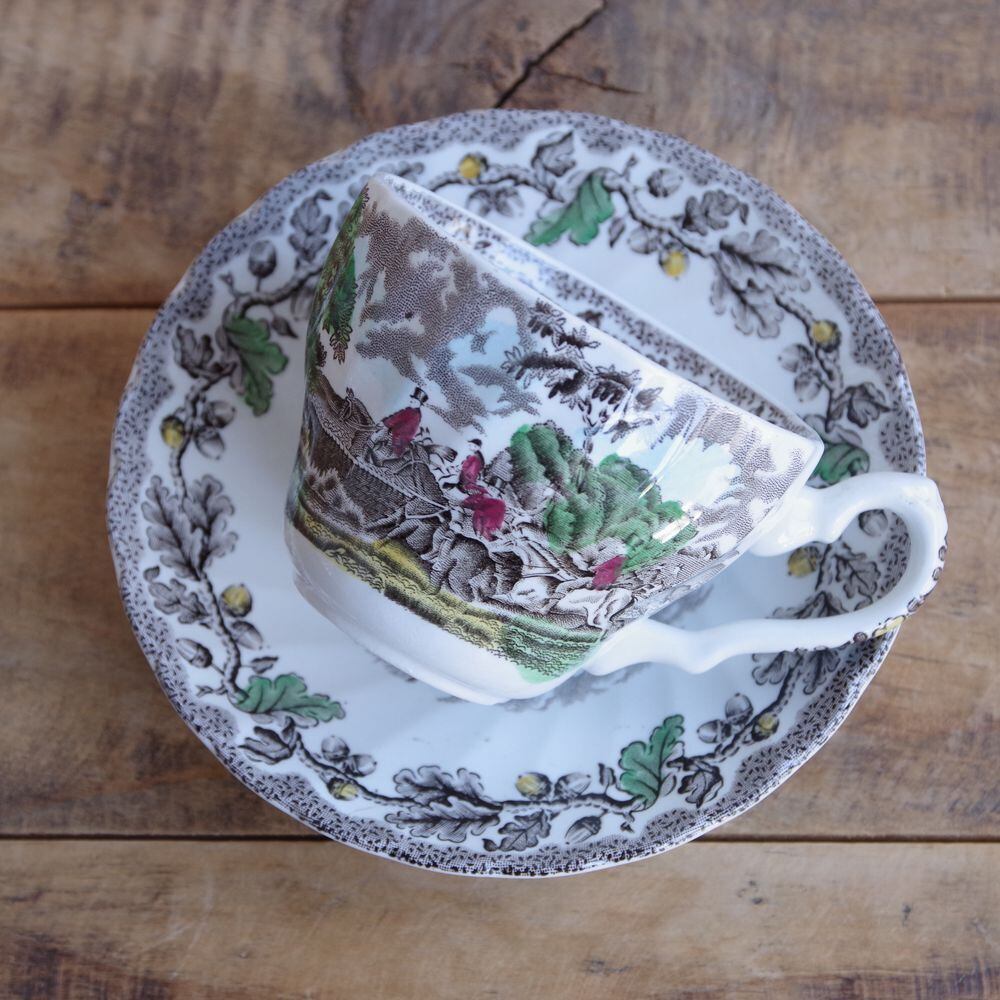イギリス ヴィンテージ 食器 馬 風景 どんぐり コーヒーカップ ソーサー レトロ 陶器 ミヨット カントリーライフ #230923-2 Myott Country Life 人物